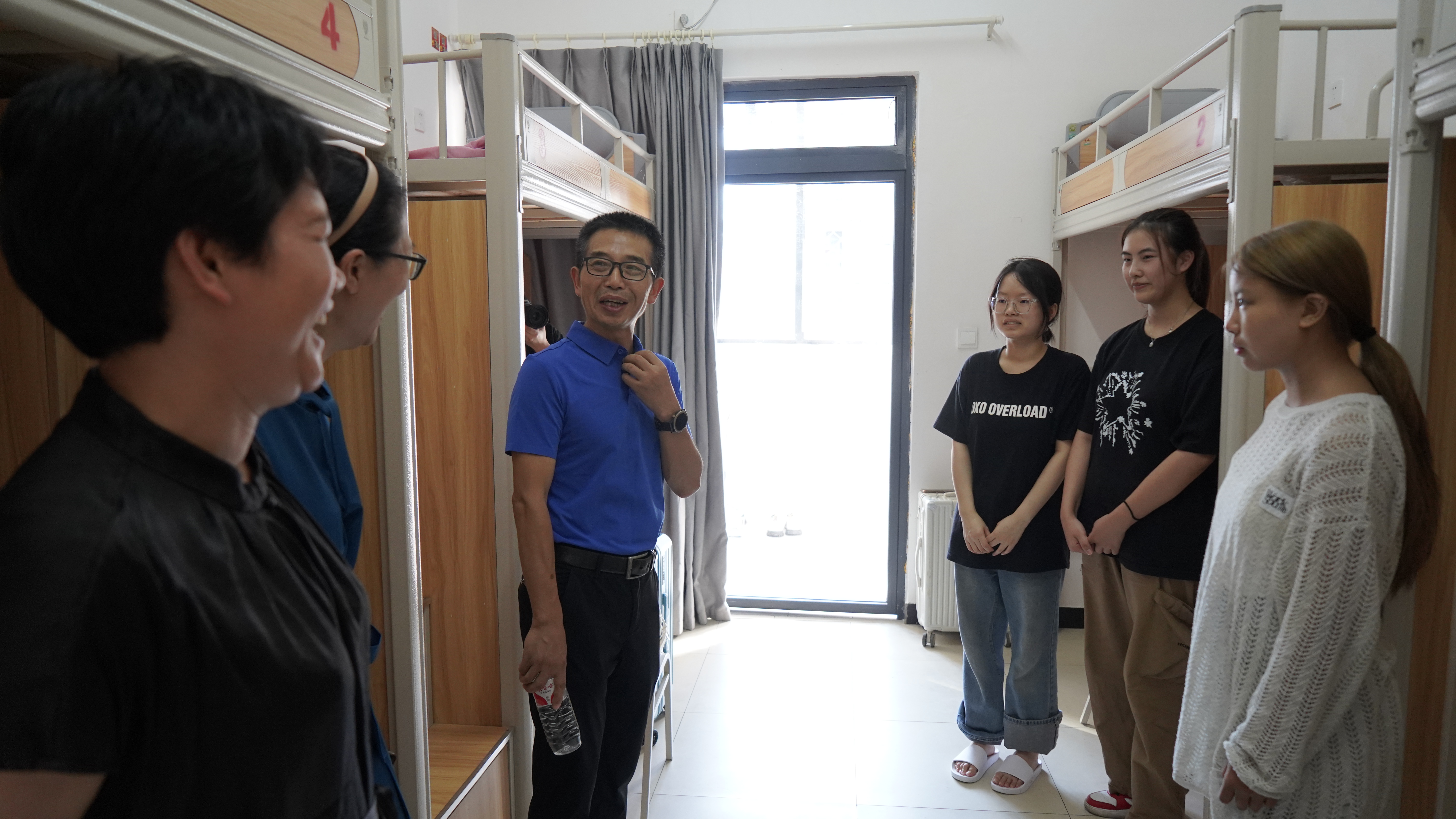 “大家从哪里来?对学校住宿环境可否满意?寝室长是否已经选好?初入大学习不习惯?”走进学生寝室,学校领导与新生亲切交谈,倾听新生们的心声,从学习规划到生活琐事,无一不体现出对新生的细致关怀和殷切期望。学校领导不时鼓励新生们,要珍惜三年大学时光,树立远大理想,勇于探索未知,积极参与各类校园文化活动和社会实践,让青春在不懈奋斗中绽放绚丽之花。