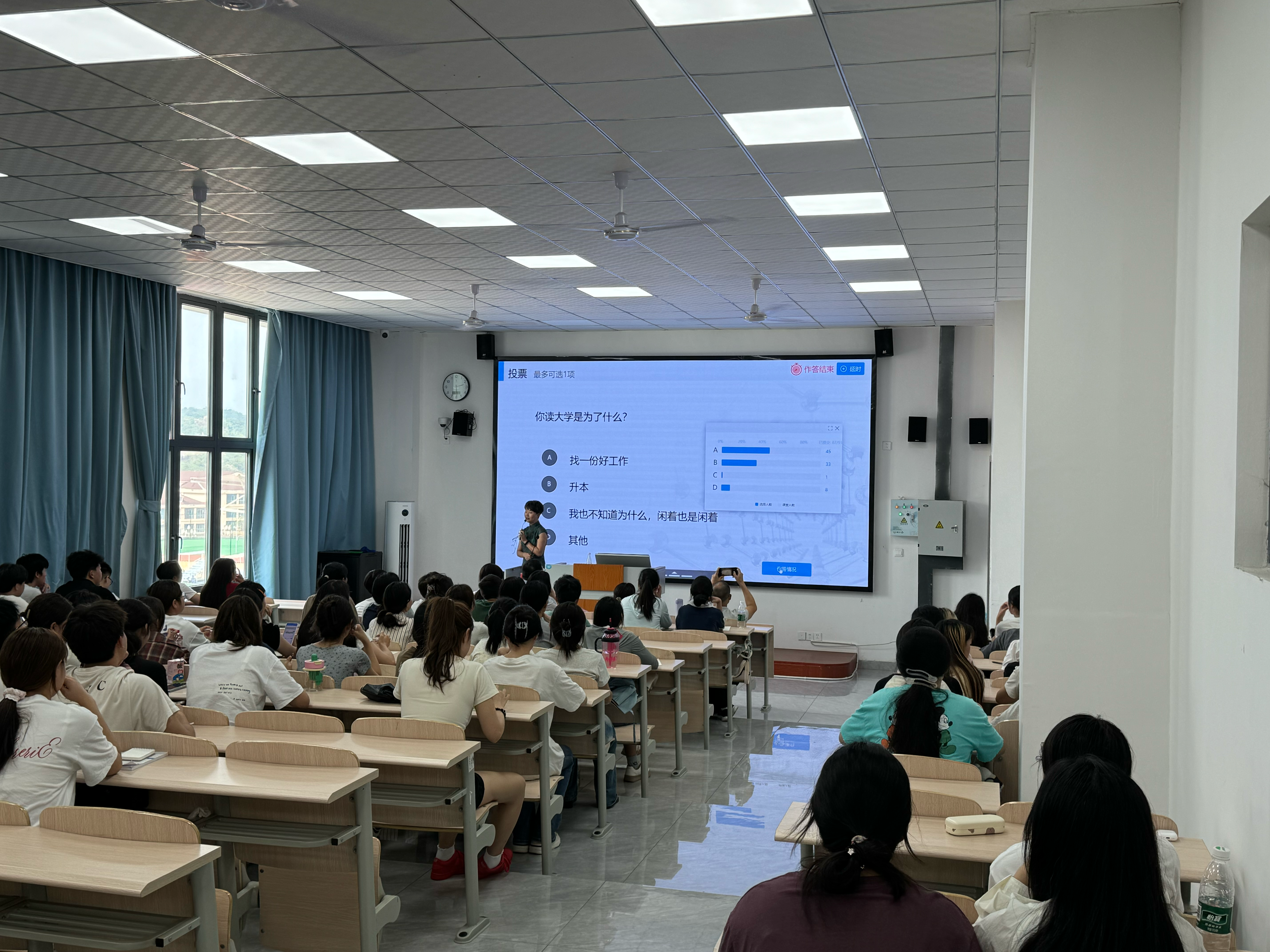 本次专业教育会包括教学团队介绍、专业介绍、互动问答三个环节。本次入学教育中,专业负责人黄戎首先对各位新生选择本专业的原因做了互动调研,了解了大多数同学就读的初衷,然后又对本专业教师团队做了详细的介绍。接下来就本专业的课程设置、专业亮点、就业前景、学习方法与要求等方面对新生们进行了详细介绍。尽管天气十分炎热,同学们都依然热情高涨,聚精会神地聆听老师的一字一句。整个专业教育师生气氛融洽,互动活跃,效果良好。