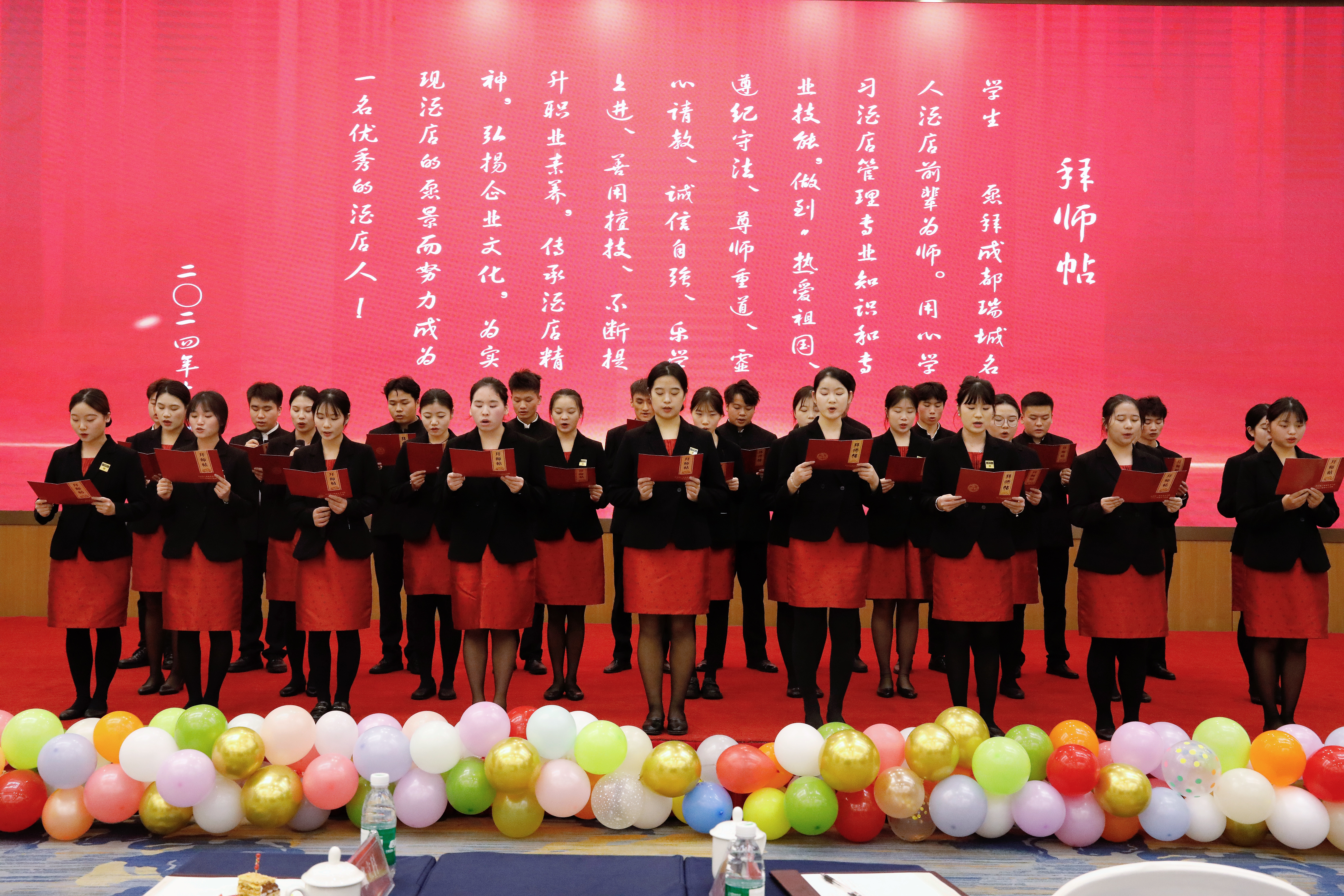 此次拜师仪式的举行标志着在校企推动下,师徒关系的正式确立,也标志着2022级酒店管理与数字化运营专业中国特色学徒制学生站在了个人成长道路上的新起点,开始一段全新的学习旅程。