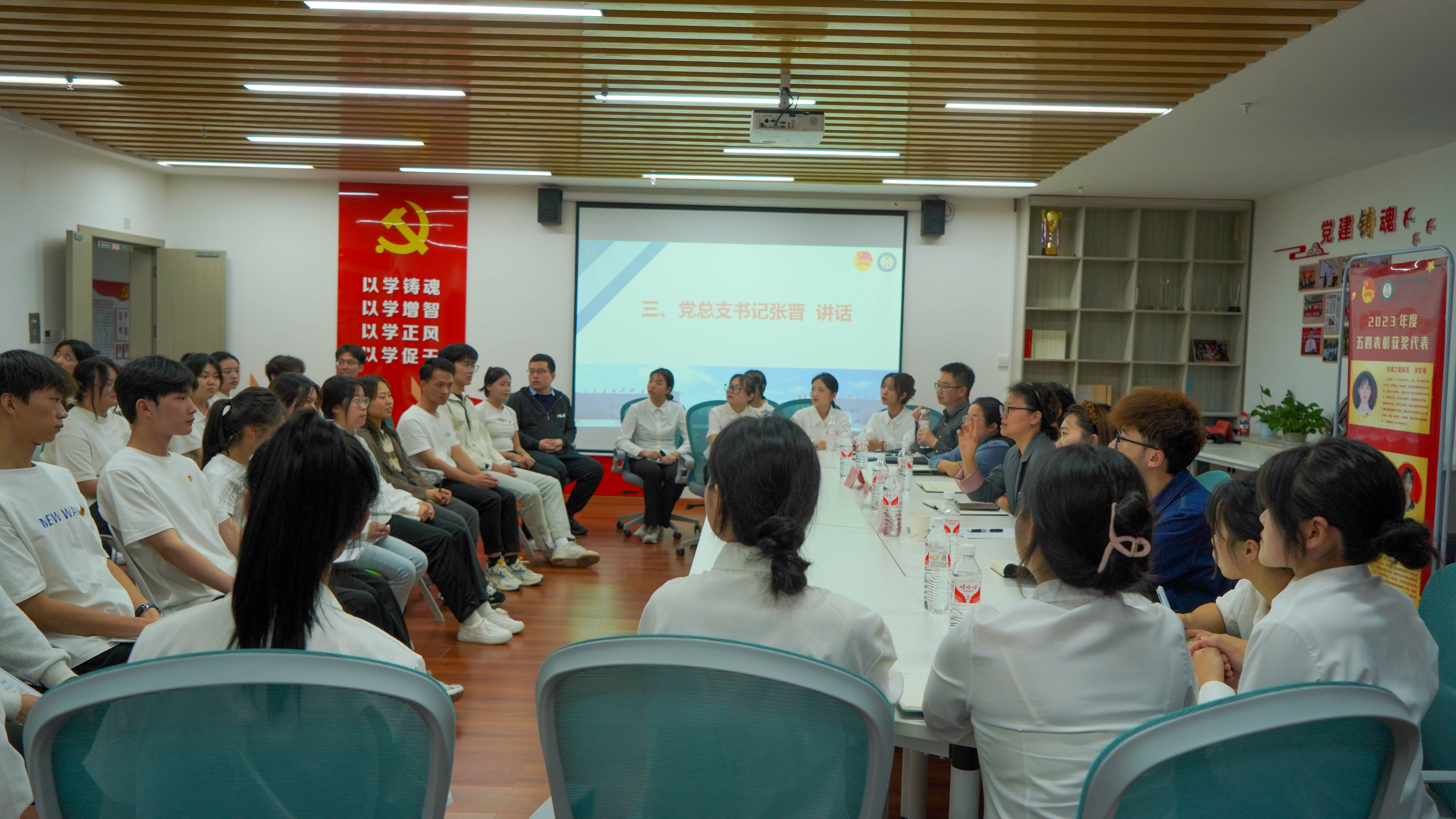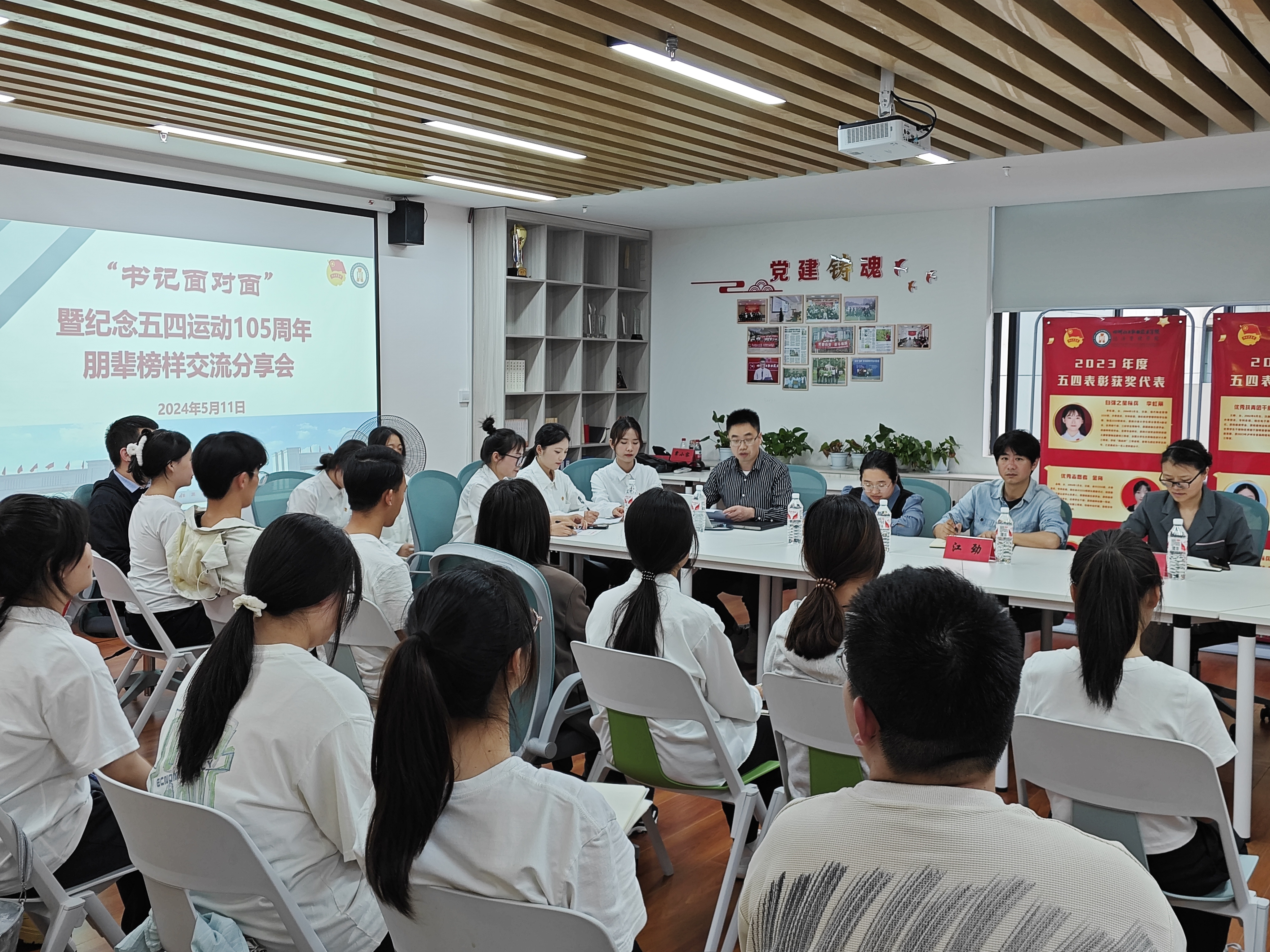为深入学习宣传贯彻习近平总书记五四青年节对全国广大青年重要寄语精神,激励和鼓舞全院团员青年继承和发扬五四精神,努力成长为有理想、敢担当、能吃苦、肯奋斗的新时代好青年。5月11日,经济管理学院团总支在醇和楼508组织开展朋辈榜样交流分享会。学院党总支书记张晋、校团委副书记(主持工作)张霞、学院党总支副书记江劲及学院50余名团员和青年代表参加会议。