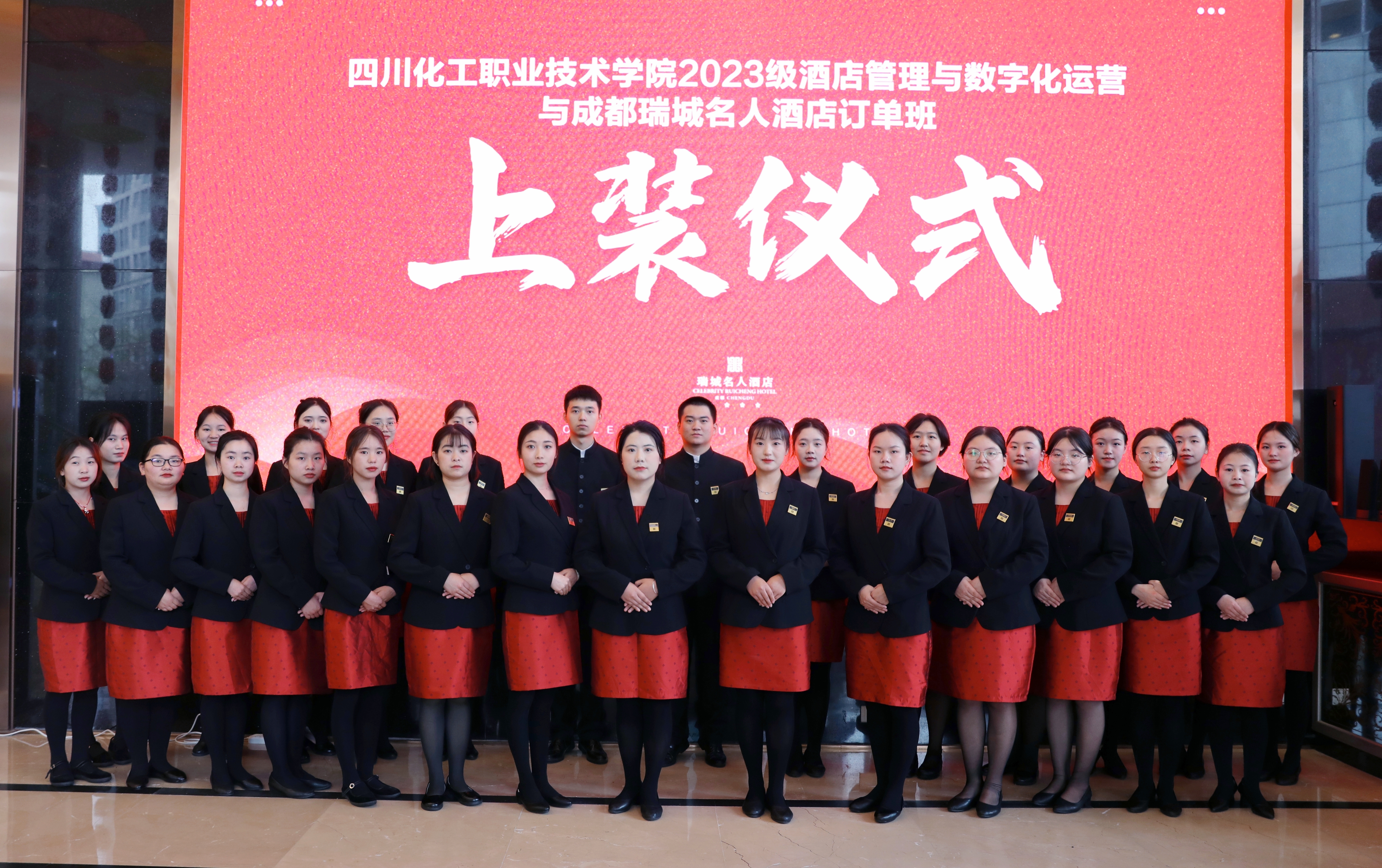 春日的成都,阳光洒满大地,万象更新。2024年3月27日,四川化工职业技术学院2023级酒店管理与数字化运营学徒1班的同学们,在成都瑞城名人酒店举行了一场庄重而富有意义的上装仪式。