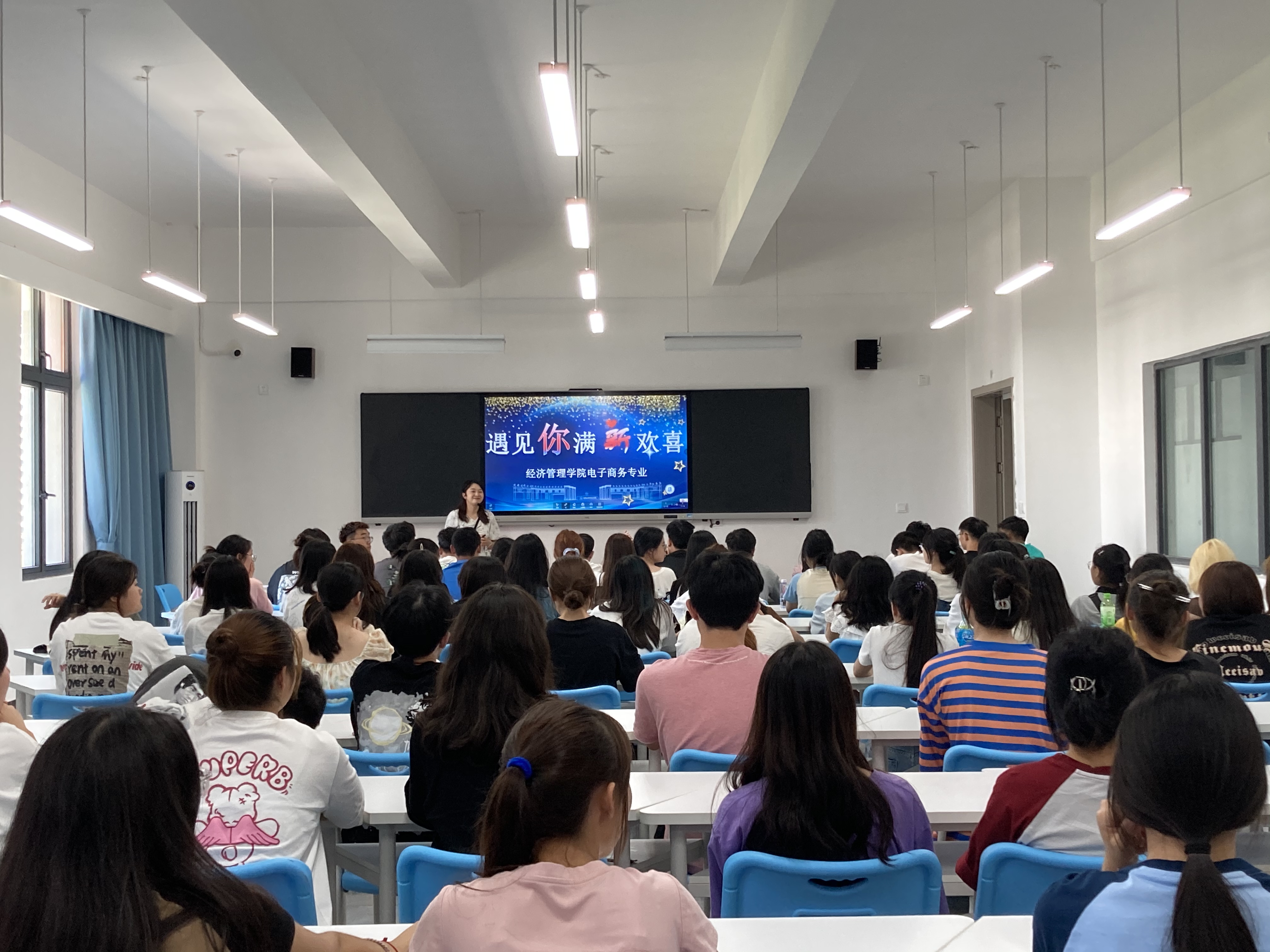 良好的开端是成功的一半,为帮助大一新生尽快适应大学生活,加深对本专业的认识和理解,同时增进师生间的相互了解,方便大一新生快速适应大学校园生活,电子商务专业于9月5日举行了主题为“遇见你满新欢喜”的新生专业入学教育活动。电子商务专业负责人郭栩杏及专业团队教师严小林、罗雅文等参与了本次活动。