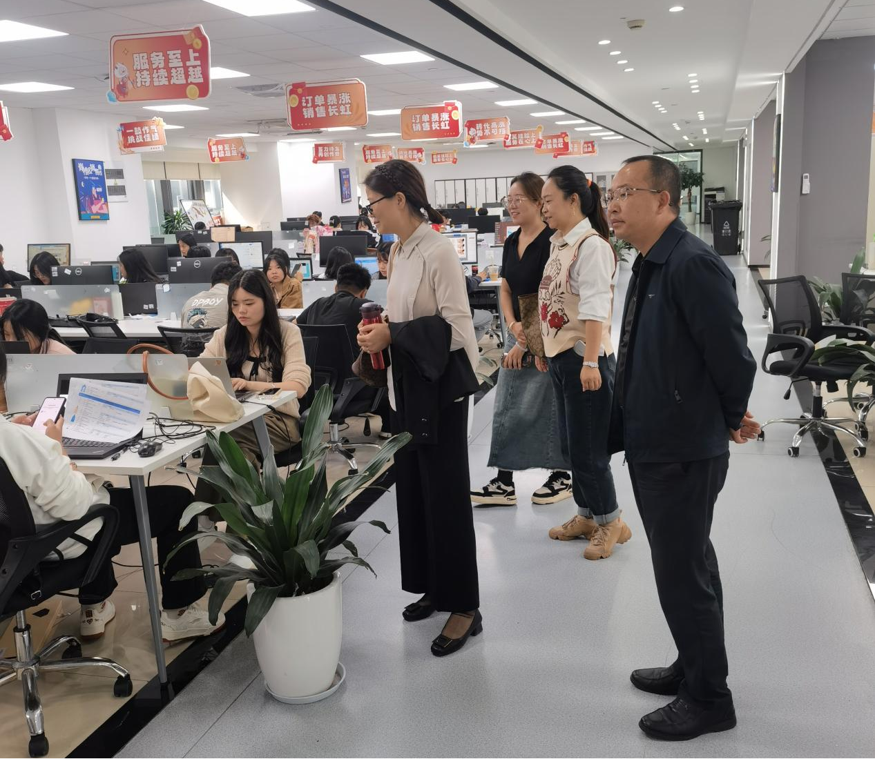 随后又来到杭州聚学网络科技有限公司开展调研,深入了解电商企业最新发展趋势,人才需求,学生职业发展路径等情况,校企双方还就相关课程建设及未来校内实训基地的搭建,包括场地、人员可行性进行深入交流探讨,并希望进一步深度合作,多渠道拓宽合作领域、创新合作机会,为学生提供更多优质实习与就业岗位,推动学生高质量充分就业,让更多优秀毕业生助力企业高质量发展,实现企业、学校、学生多方共赢。