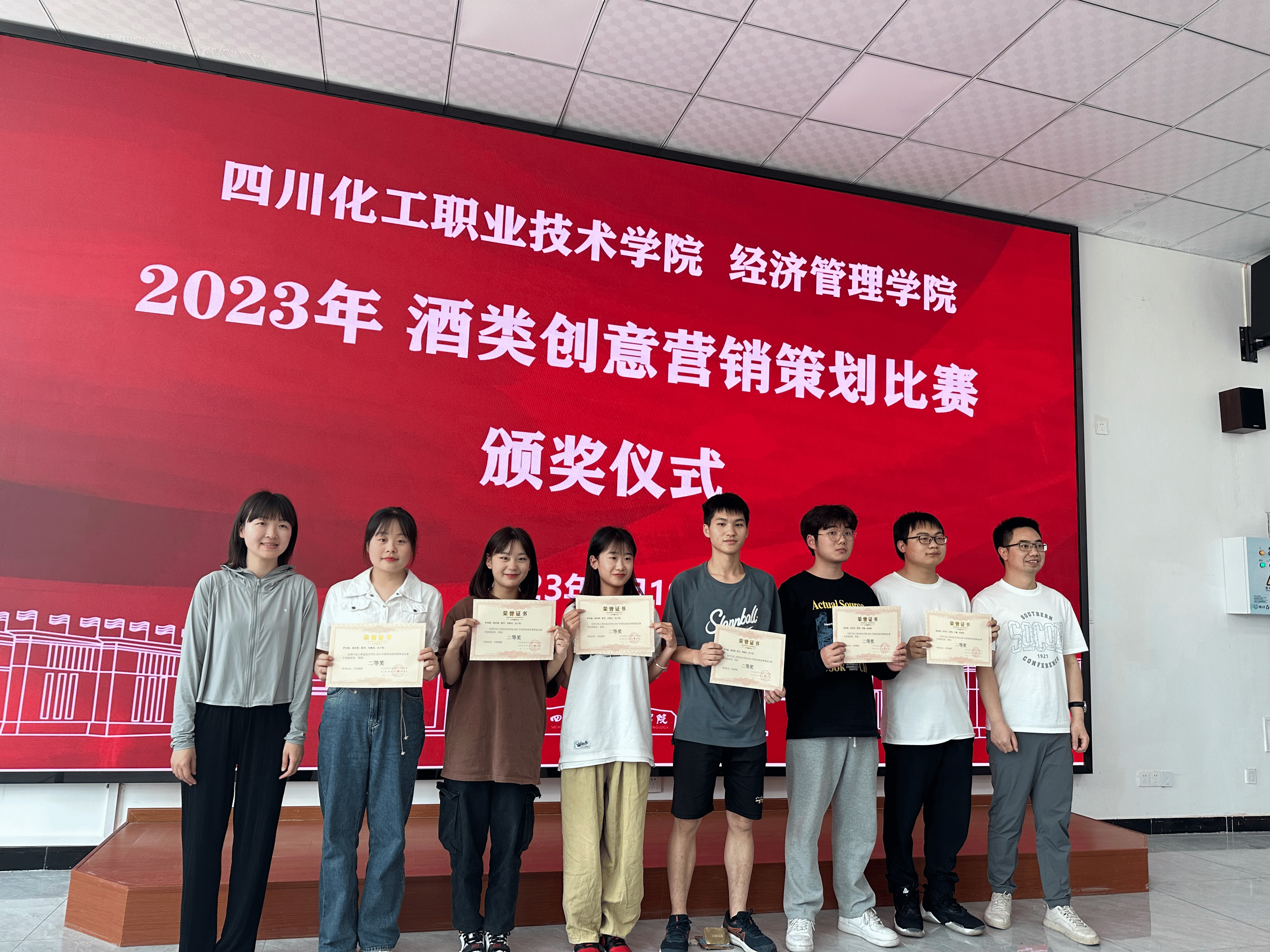 2023年4月19日,学院举行了颁奖仪式,为获奖同学颁发了获奖证书和奖品。其中,ITMC情境营销技能竞赛中,市场营销2232班的杨璐同学、市场营销2132班的孙华洋同学以及市场营销2131的胡琳同学荣获一等奖,来自市场营销2232班和市场营销2132班的姚雨荷、罗会、罗国杨等9位同学荣获二等奖,来自市场营销2231班、2232班、2132班和大数据与会计2232班的张庆、陈瑶、胡立和黄春霞等同学荣获三等奖。在酒类创意营销策划比赛校赛中,由来自市场营销2131班的任蕾和李梦以及VR 2131班的关梦琴和陈厅同学组成的得胜队荣获一等奖,由来自电子商务和市场营销专业的张炎雨、岳洪吉等5位同学组成的go fly队和由罗安聪、徐若膑等5位同学组成的颜值爆表队荣获二等奖,由来自市场营销、电子商务等专业的李青莲、朱怡、邓兰等同学组成的东续九阍组、不被定义的未来组、飞鹏探程组荣获三等奖。