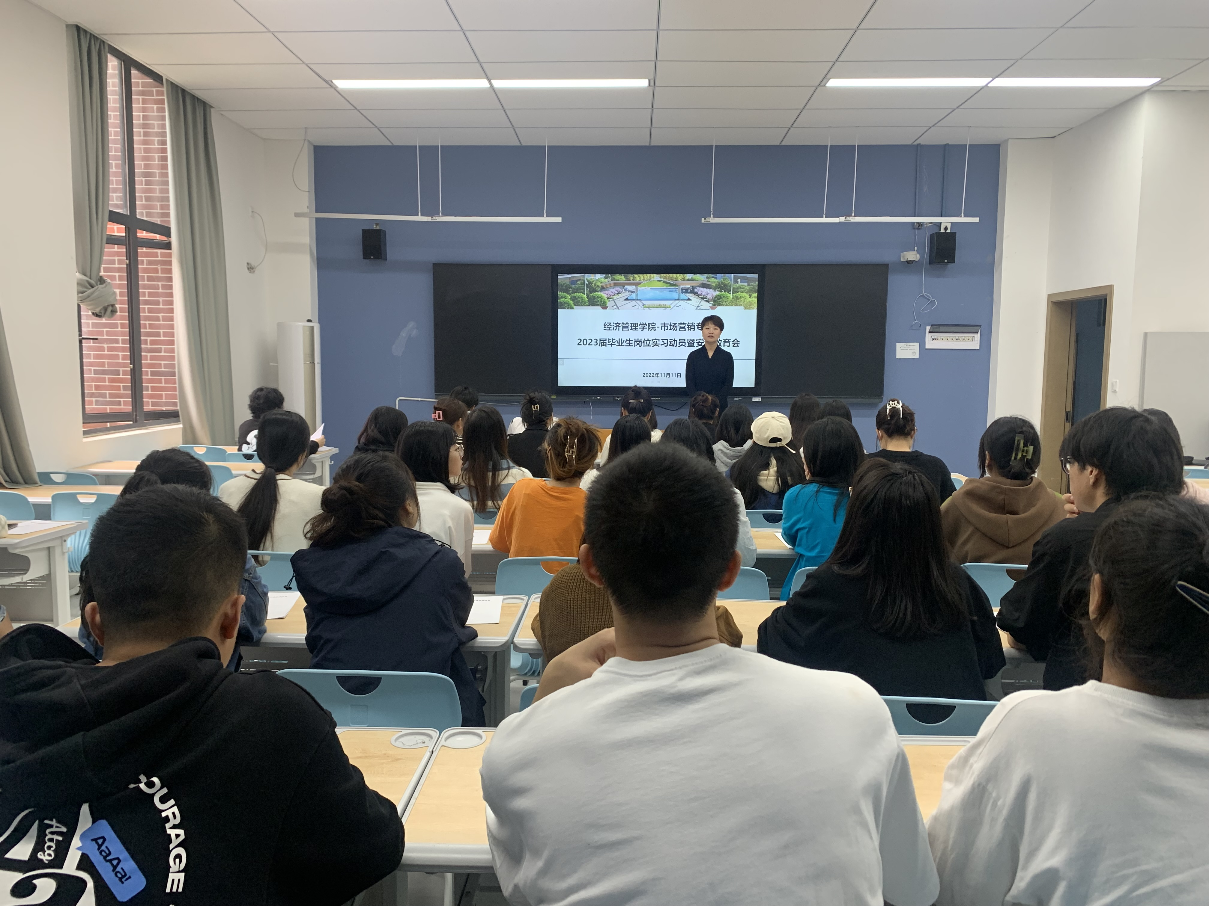 在双选会前夕,为切实提高同学们的就业意识,了解同学们的就业意向,帮助同学们明确岗位实习意义,鼓励同学们积极参加岗位实习,经济管理学院于2022年11月11日对2023届毕业生开展岗位实习动员暨安全教育系列活动。