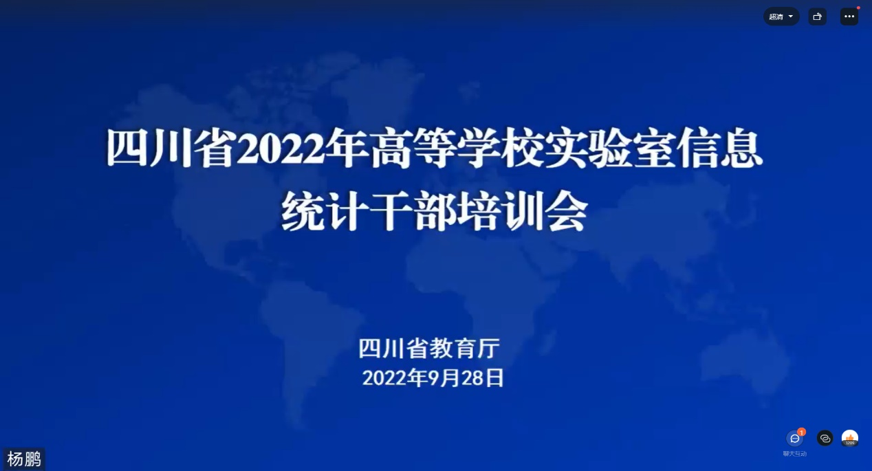 为深入贯彻落实习近平总书记关于教育的重要论述和全国教育大会精神,不断提高实验室建设水平,经济管理学院实训教研室于2022年9月28日参加了四川省教育厅办公室关于召开 2022 年高等学校实验室信息统计干部在线培训会。参加培训的人员有经济管理学院副院长陈秀芬、实训教研室全体实训教师。