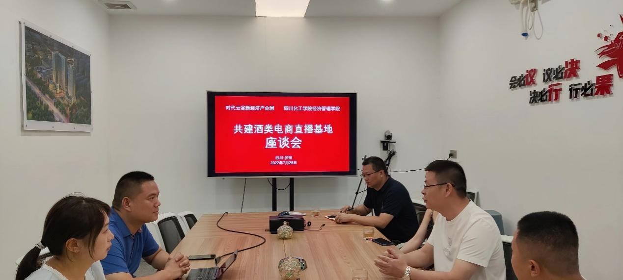 2022年7月26日,经济管理学院院长马小洪带队调研位于中国(四川)自由贸易试验区川南临港片区龙马潭区中实时代广场的时代云谷新经济产业园——酒水产业带直播总部基地。该园区整体规划建设2万平方米,其中企业总部(团体)办公区约1万平米、白酒产业直播总部基地约1万平米。基地设企业总部(团体)办公区、电商数据中心、选品(体验)中心、培训中心、创新创业孵化中心、品牌直播区、运营中心等。配套有甲级写字楼、国际酒店、公寓、会议中心、消费体验街区等,周边高校林立,商贸物流配套完善,人才、商贸、物流聚集。