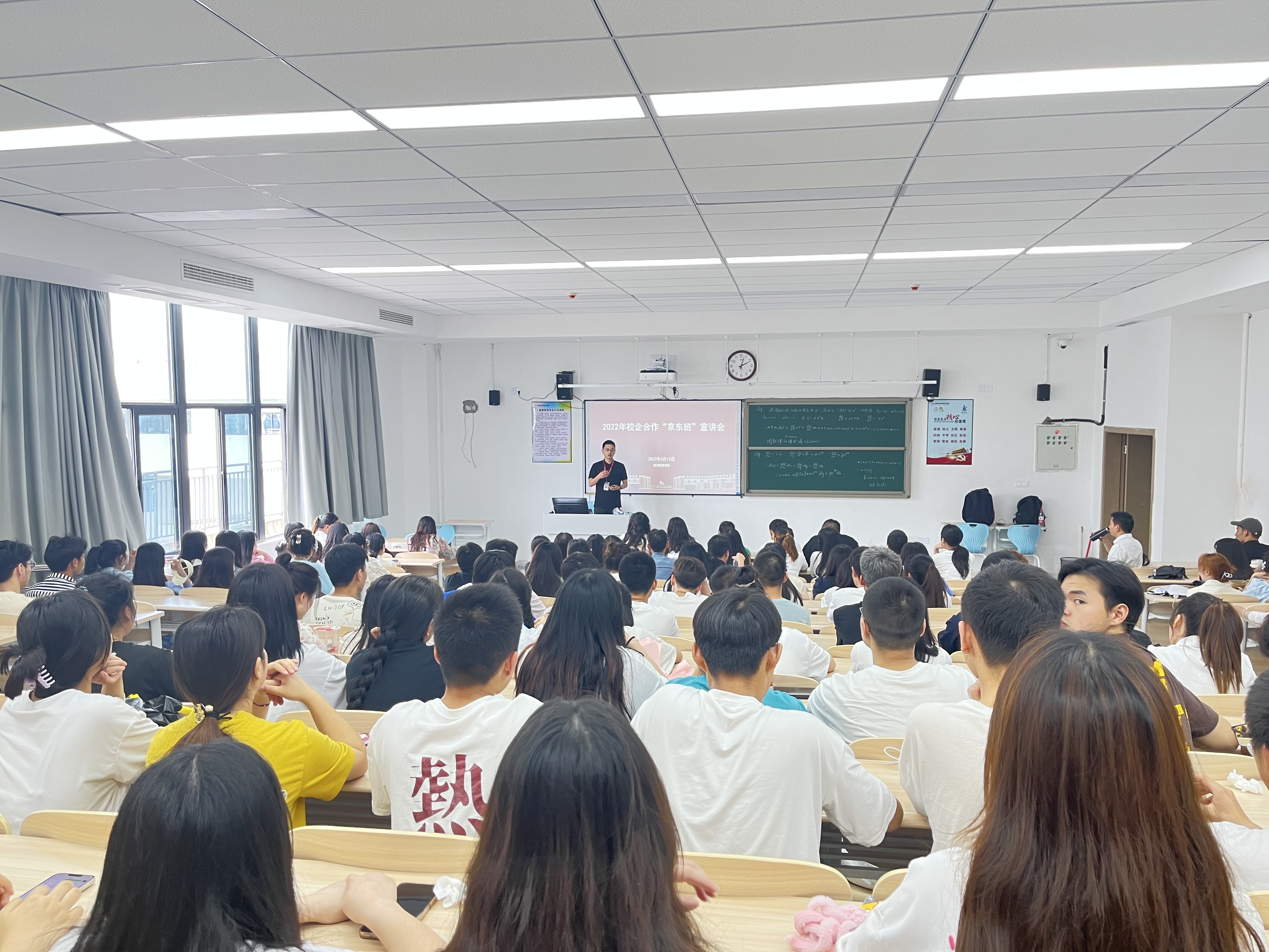 为推进校企深度合作,体现校企协同育人,为经管学院学子提供优质的就业途径,5月12日下午,成都京邦达物流科技有限公司来校进行京东订单班的宣讲面试,经济管理学院20级现代物流管理、电子商务等专业的150余名学生参加了宣讲面试活动。