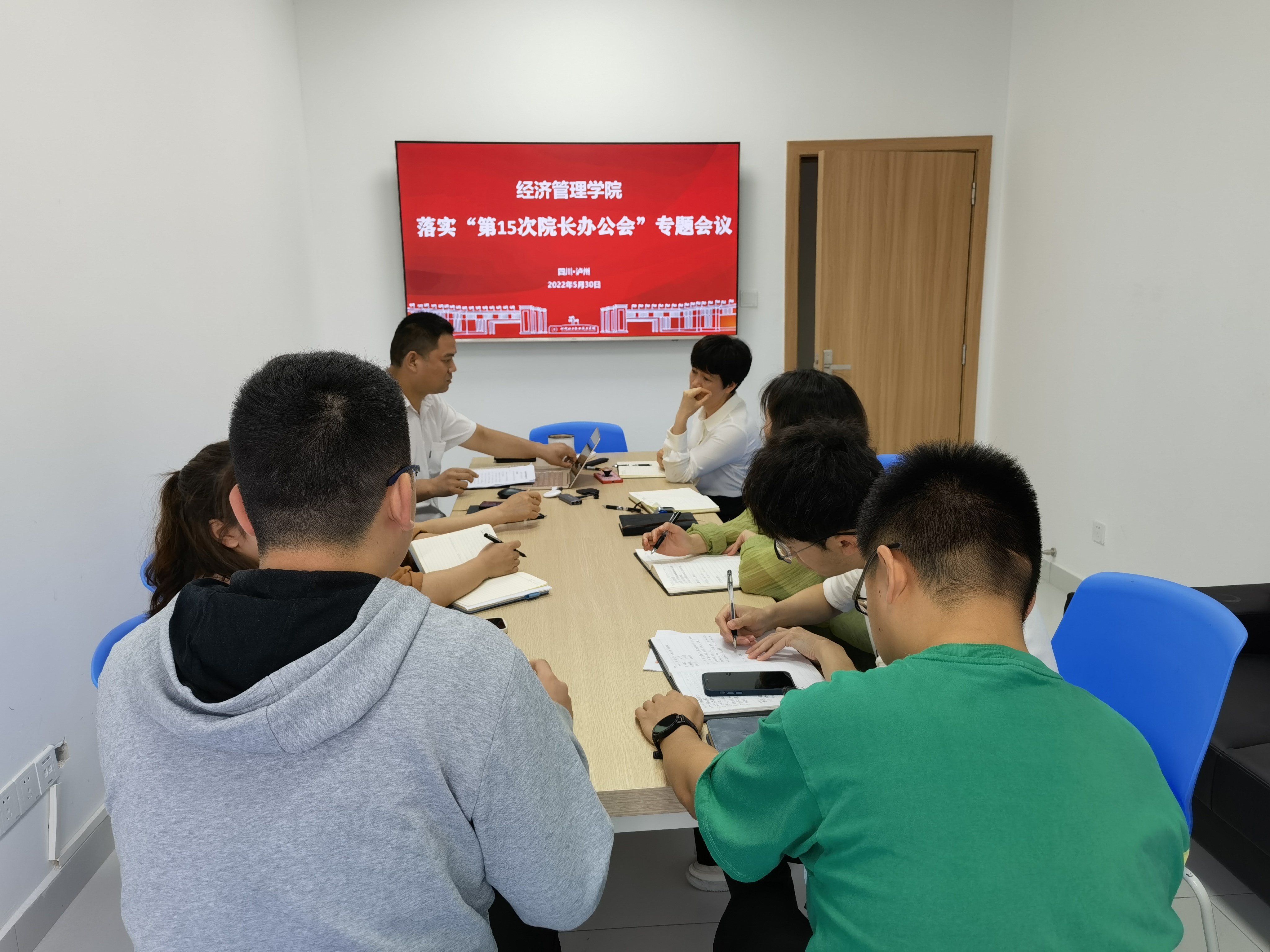为了贯彻落实“第十五次院长办公会”会议精神,帮助学院教职工熟悉工作重点,激发全院教职工干事热情,经济管理学院于2022年5月30日在综合楼437办公室召开了“第十五次院长办公会”专题会议精神学习活动。经济管理学院张晋书记、马小洪院长、陈秀芬副院长及所有行政工作人员参加了此次活动。
