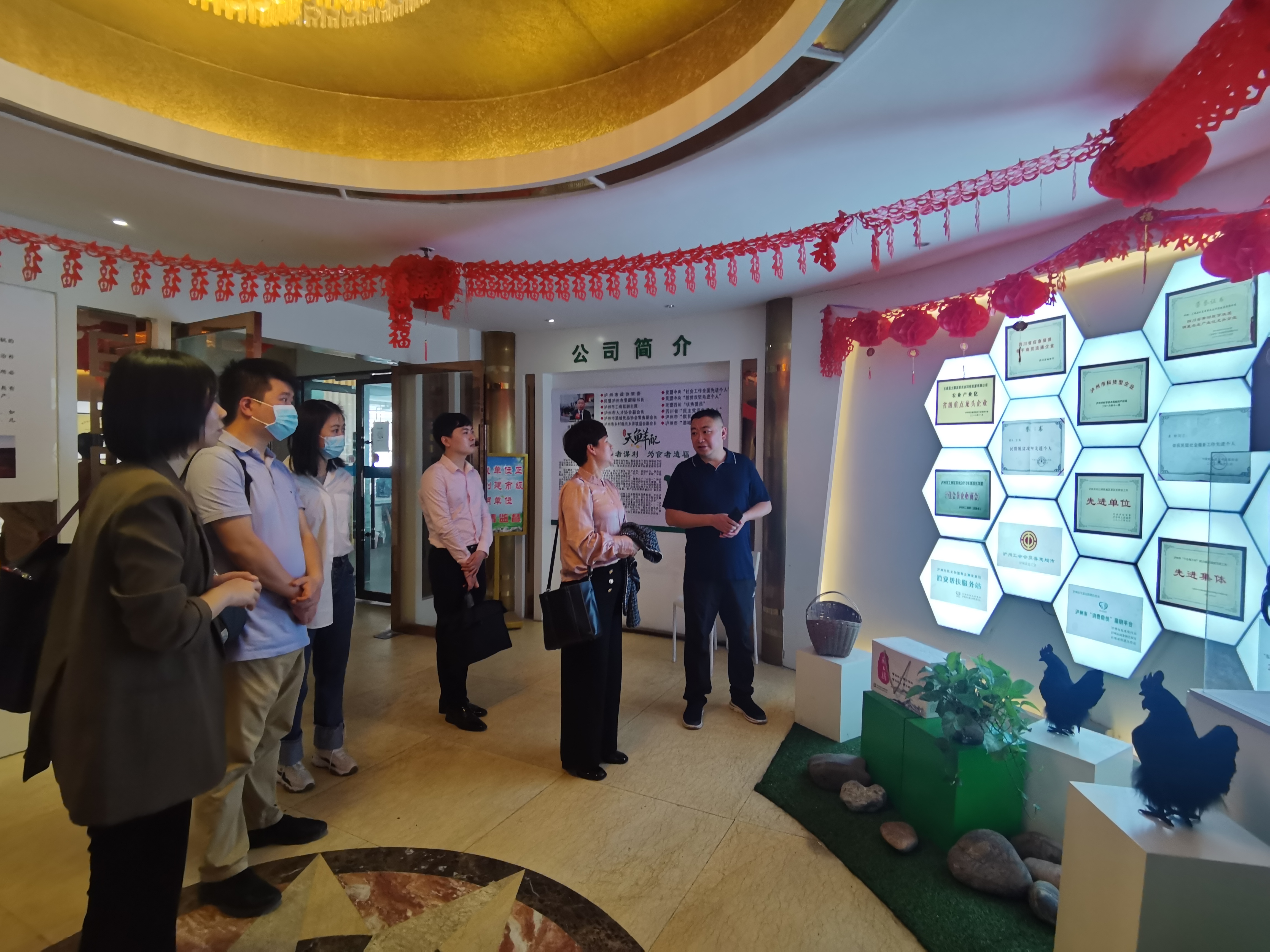 酒城优品公司领导陪同调研团队参观公司的展览馆、直播基地,并且热情地介绍公司的企业文化、发展理念和业务范围等内容。