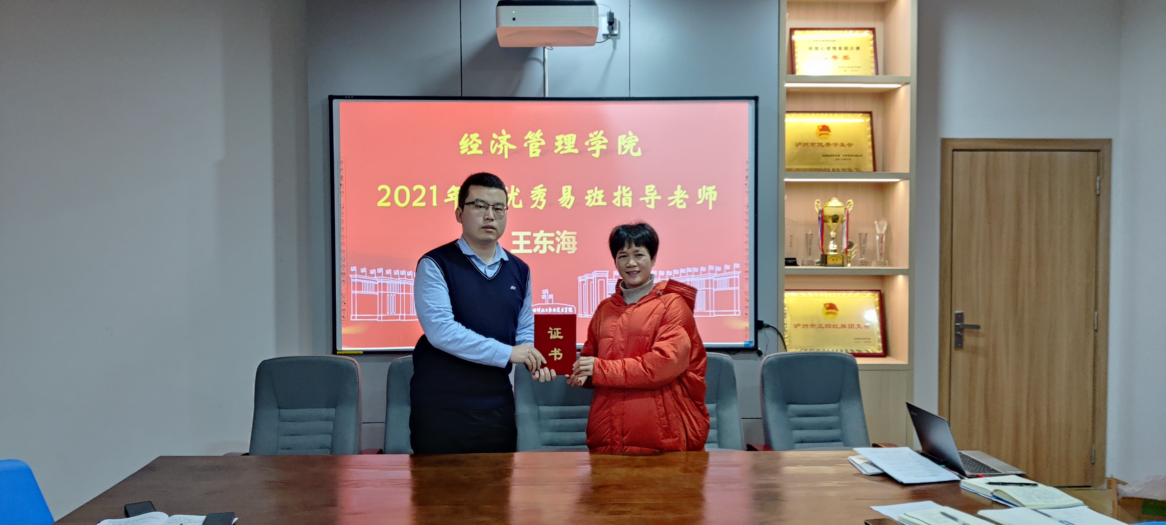 会议最后,由张晋书记和陈秀芬副院长分别为经管学院2021年度优秀辅导员和优秀易班指导老师进行颁奖。