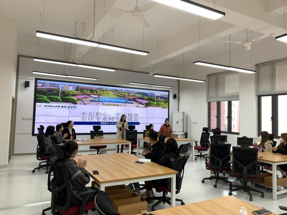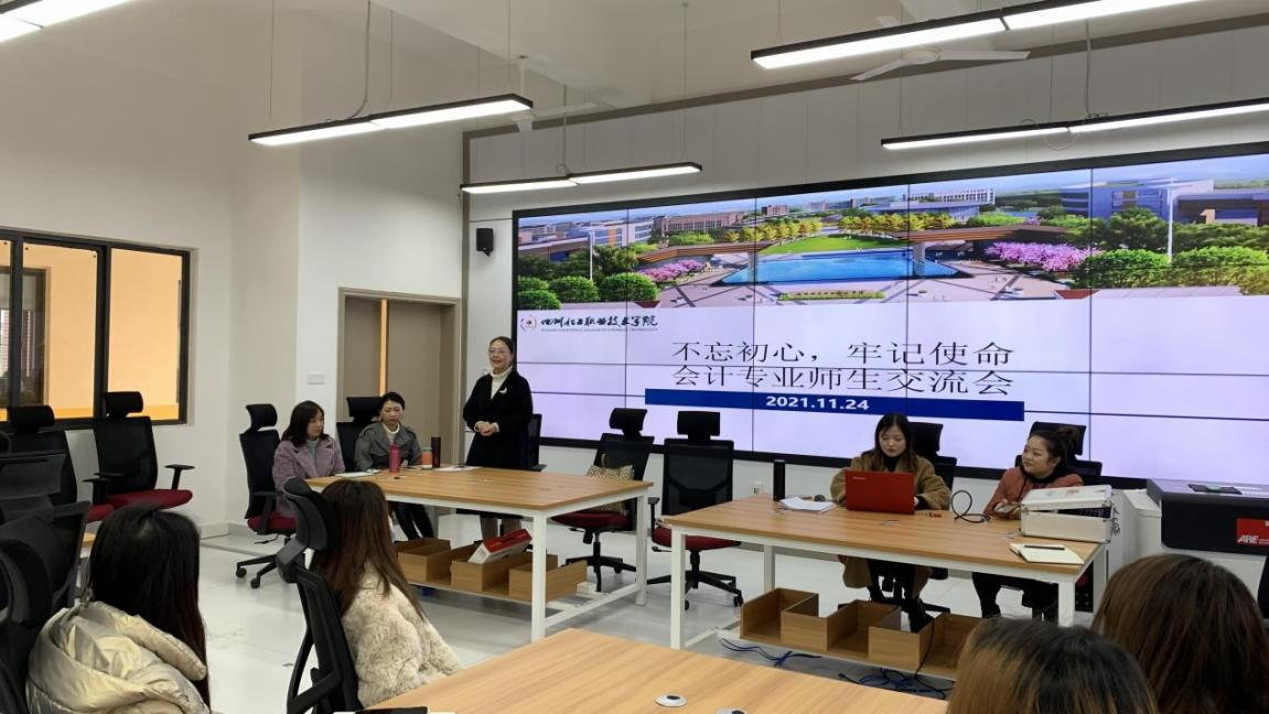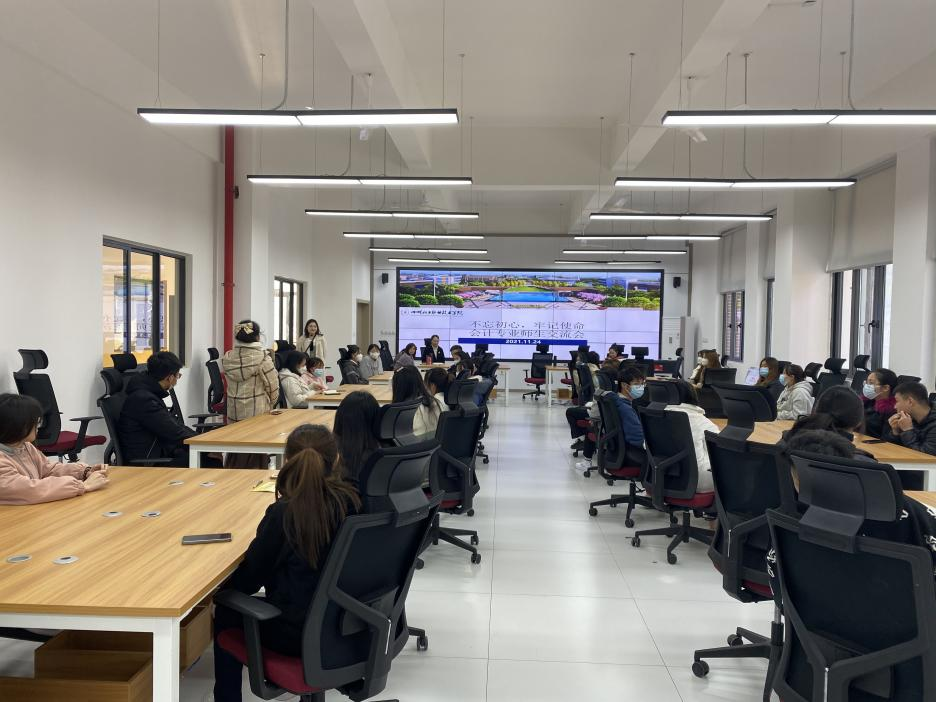 2021年11月24日下午,经济管理学院大数据与会计专业在8B203教室召开“不忘初心、牢记使命”师生交流会,本次会议由大数据与会计专业专任教师钟倩玉主持,会计专业任课教师、辅导员,学院各年级学生代表、学生组织学生代表参与会议。