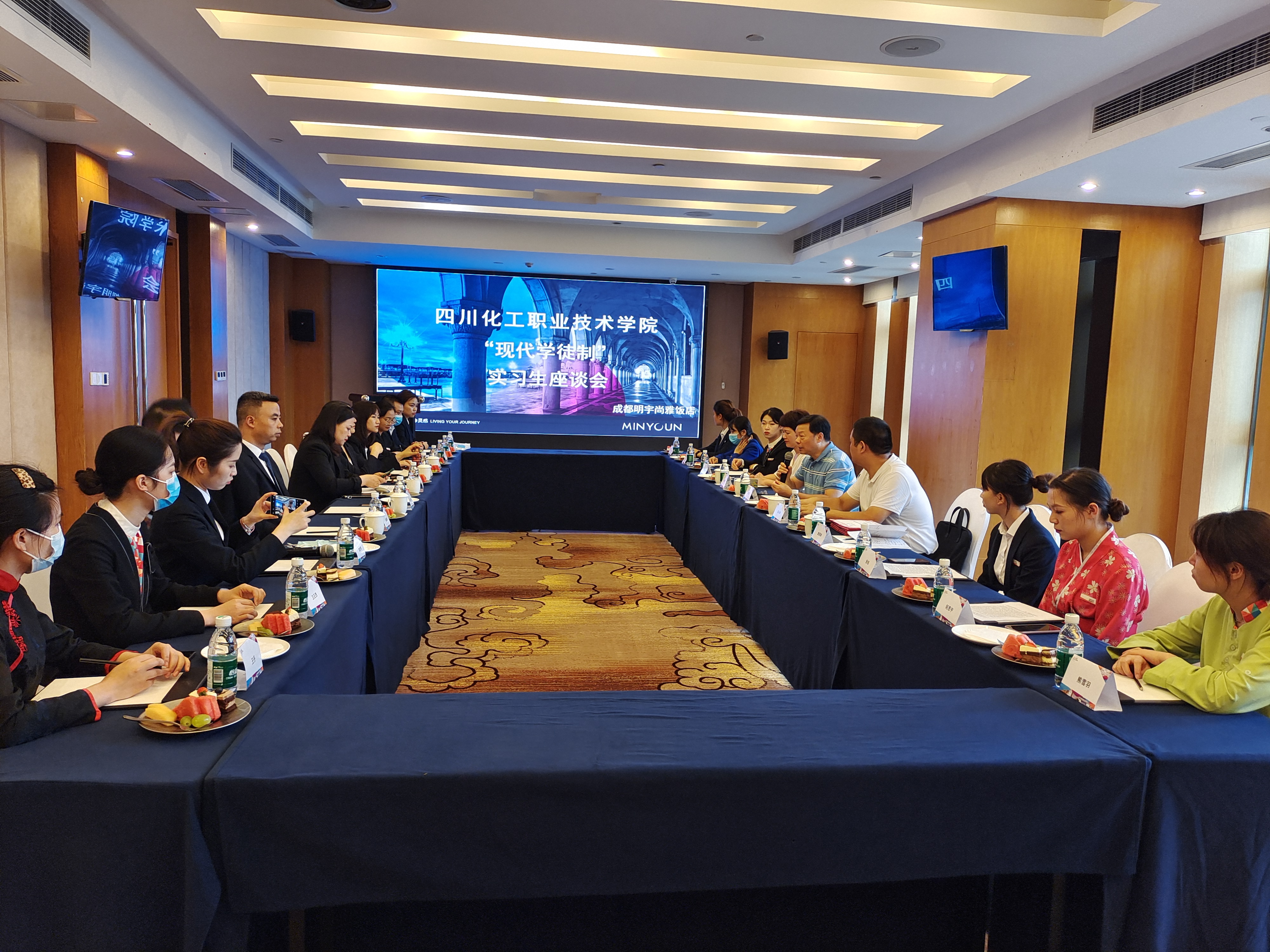 8月19日下午,2019级酒店管理与数字化运营专业现代学徒制成都明宇尚雅酒店实习生座谈会在明宇尚雅酒店举行。三名实习生代表分别发言,对一个多月的实习生活进行了阶段性总结,也谈到自己的收获和成长。明宇尚雅酒店总经理邓启芳期待继续加深与学校的现代学徒制双主体育人,竭尽全力让学生学有所成。王志斌副院长希望同学们在岗位工作中,精益求精,锐意进取,传承与创新并举,继续将“厚德、博学、广才、精业”的校训精神,镌刻在企业、镌刻在社会。