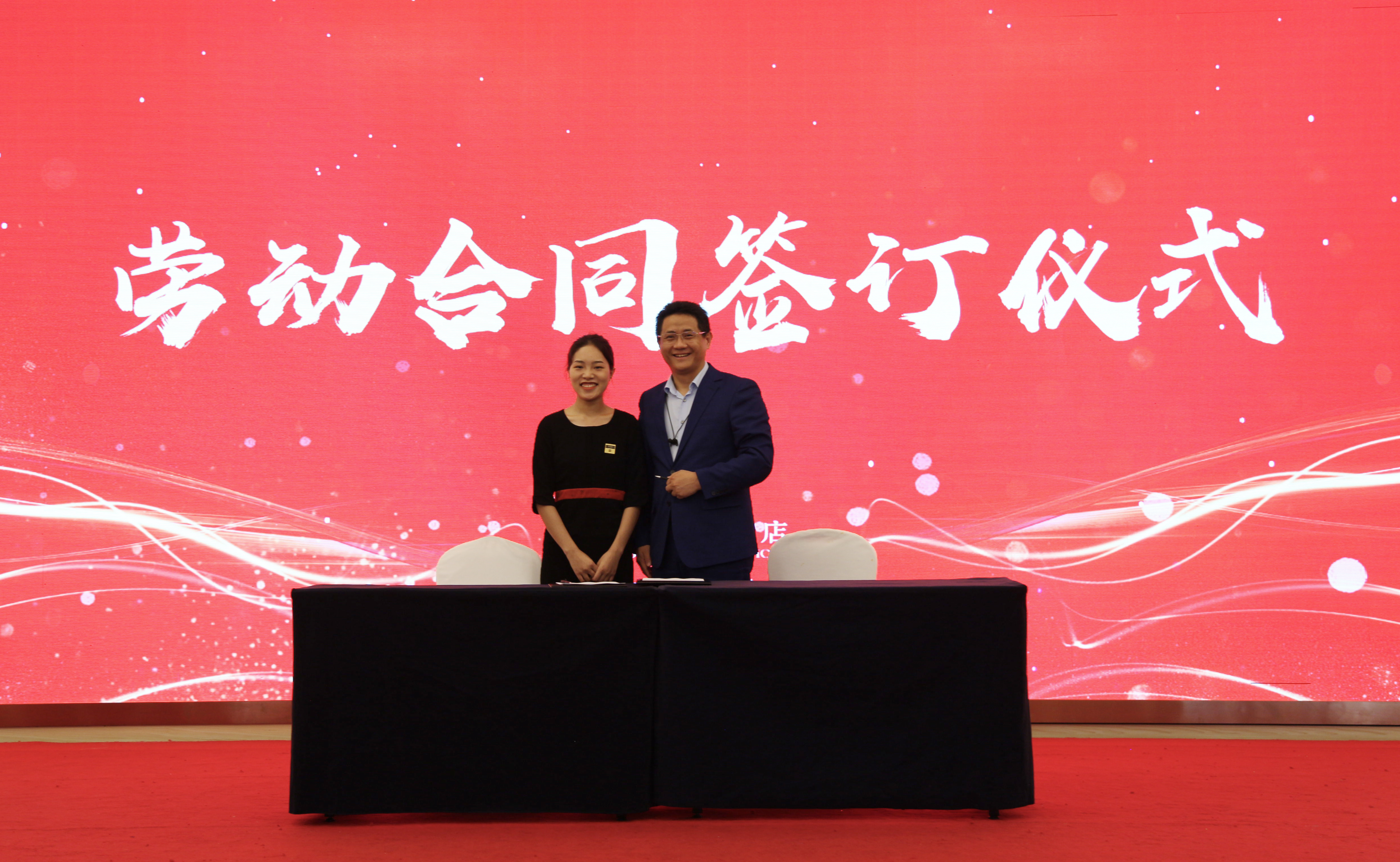 文申柳院长和庄文金总经理分别为同学们颁发了毕业证书和企业结业证书。企业与毕业后留职的同学现场签订了劳动合同。