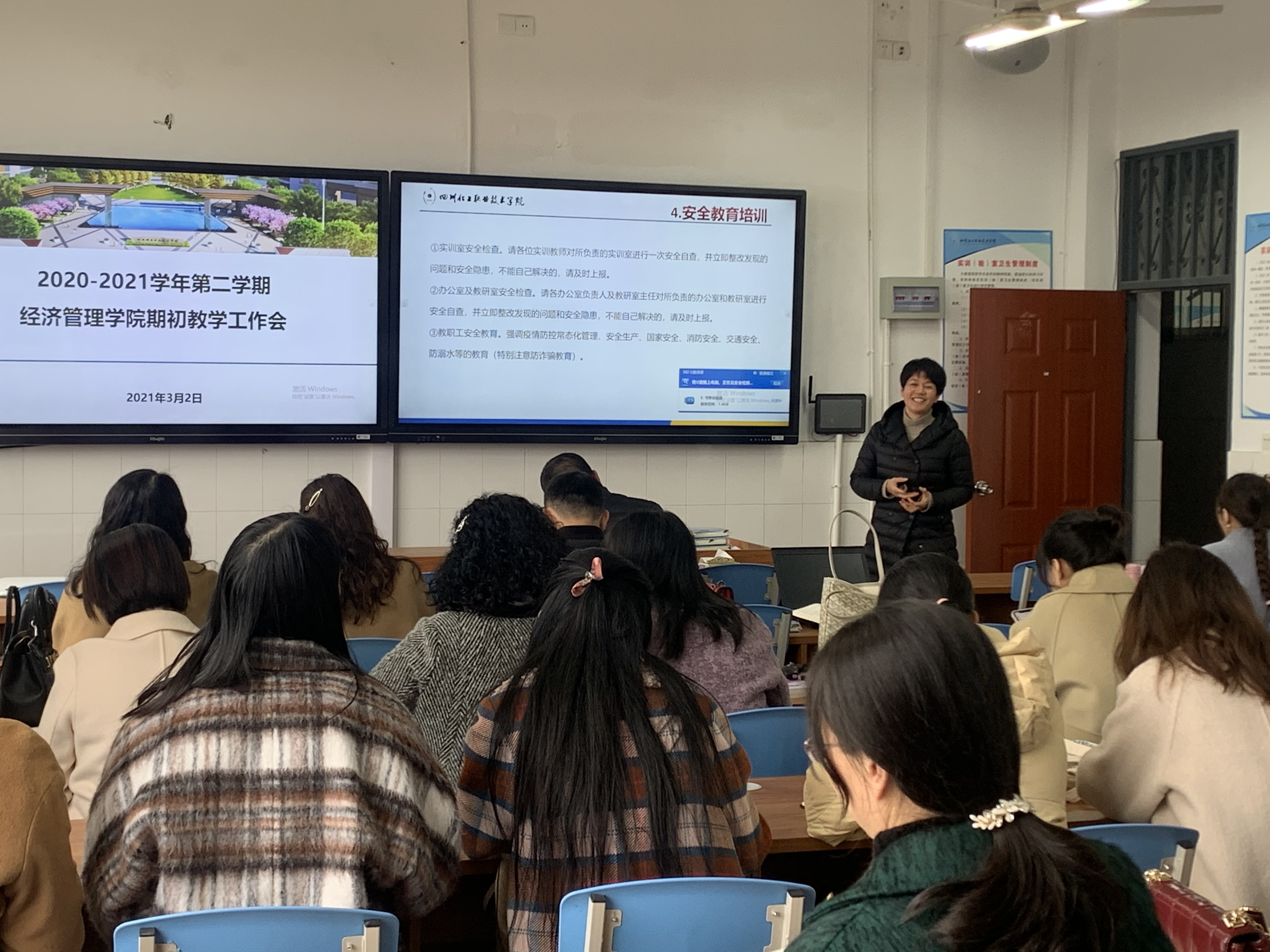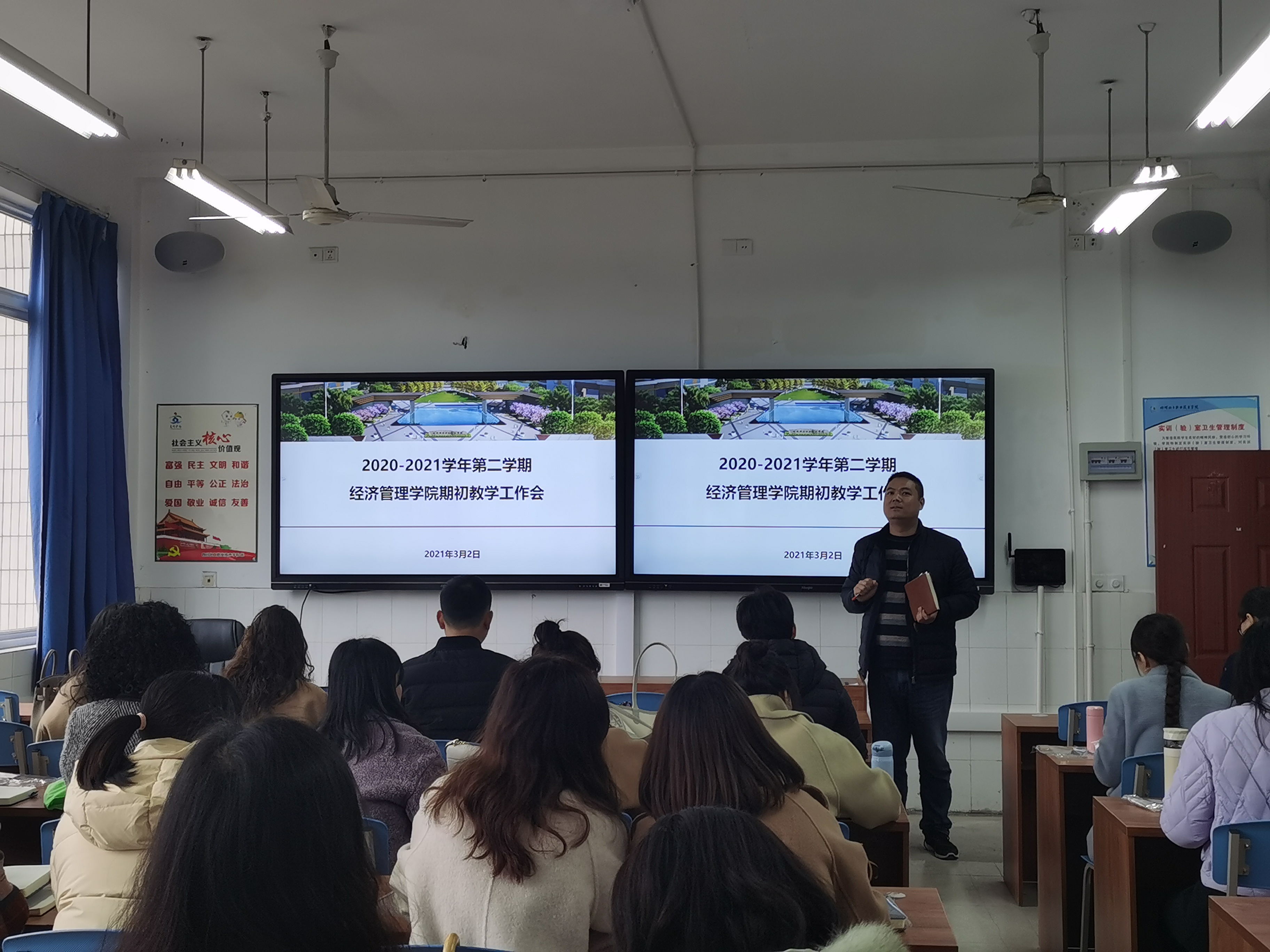 2021年3月2日上午,经济管理学院在东校区代英楼202实训室召开2020—2021学年第二学期期初教学工作会,经管学院张晋书记、马小洪院长、陈秀芬副院长及全体教师参加了本次工作会,会议由马小洪院长主持。