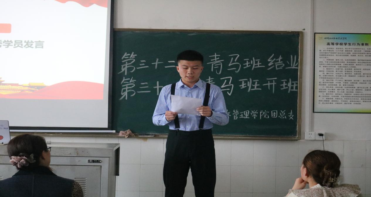 3月17日,经济管理学院青马班第32期结业暨第33期开班仪式在代英楼415教室成功举行。经济管理学院党总支书记张晋老师、学生党支部书记张婷老师和团总支书记李诗诗老师出席活动,第32期、33期青马班全体学员参加此次活动。