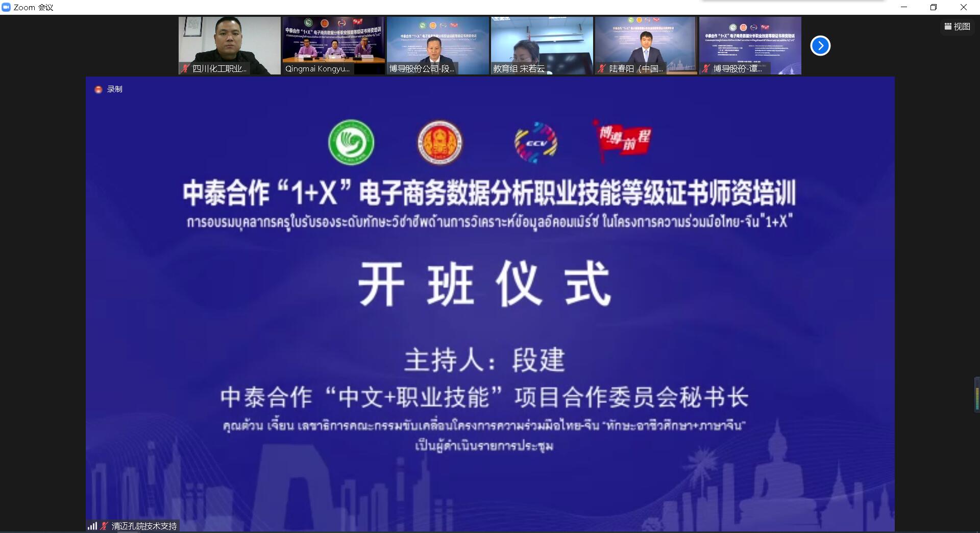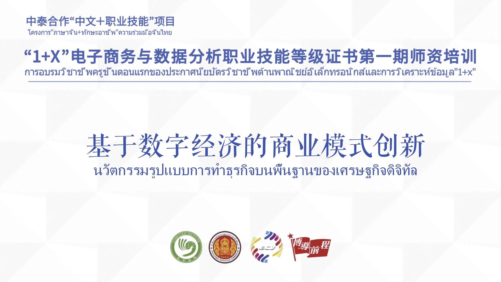 2020年11月28日,中泰合作“中文+职业技能”项目“1+X”电子商务数据分析职业技能等级证书师资培训顺利开班。本次培训由泰国教育部职教委、全国电子商务职业教育教学指导委员会(中国)、“一带一路”电商谷项目建设发展理事会、清迈大学孔子学院和博导股份联合主办。来自中泰院校和企业代表共200余人参加线上开班仪式。会议由博导股份董事长、中泰合作“中文+职业技能”项目合作委员会秘书长段建主持。学校经济管理学院受邀参加本次师资培训,负责“基于数字经济的商业模式创新”(นวัตกรรมรูปแบบการทำธุรกิจบนพื้นฐานของเศรษฐกิจดิจิทัล)部分内容。