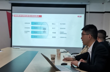 10月13日上午9点,经济管理学院党总支副书记张晋、经济管理学院副院长马小洪、营销专业群教研室主任叶永霞、营销专业负责人黄戎及相关专业教师与新道科技股份有限公司省区总经理、四川化工职业技术学院客座教授瞿刚等一行4人针对于我院营销专业的现状及发展进行了深入研讨。