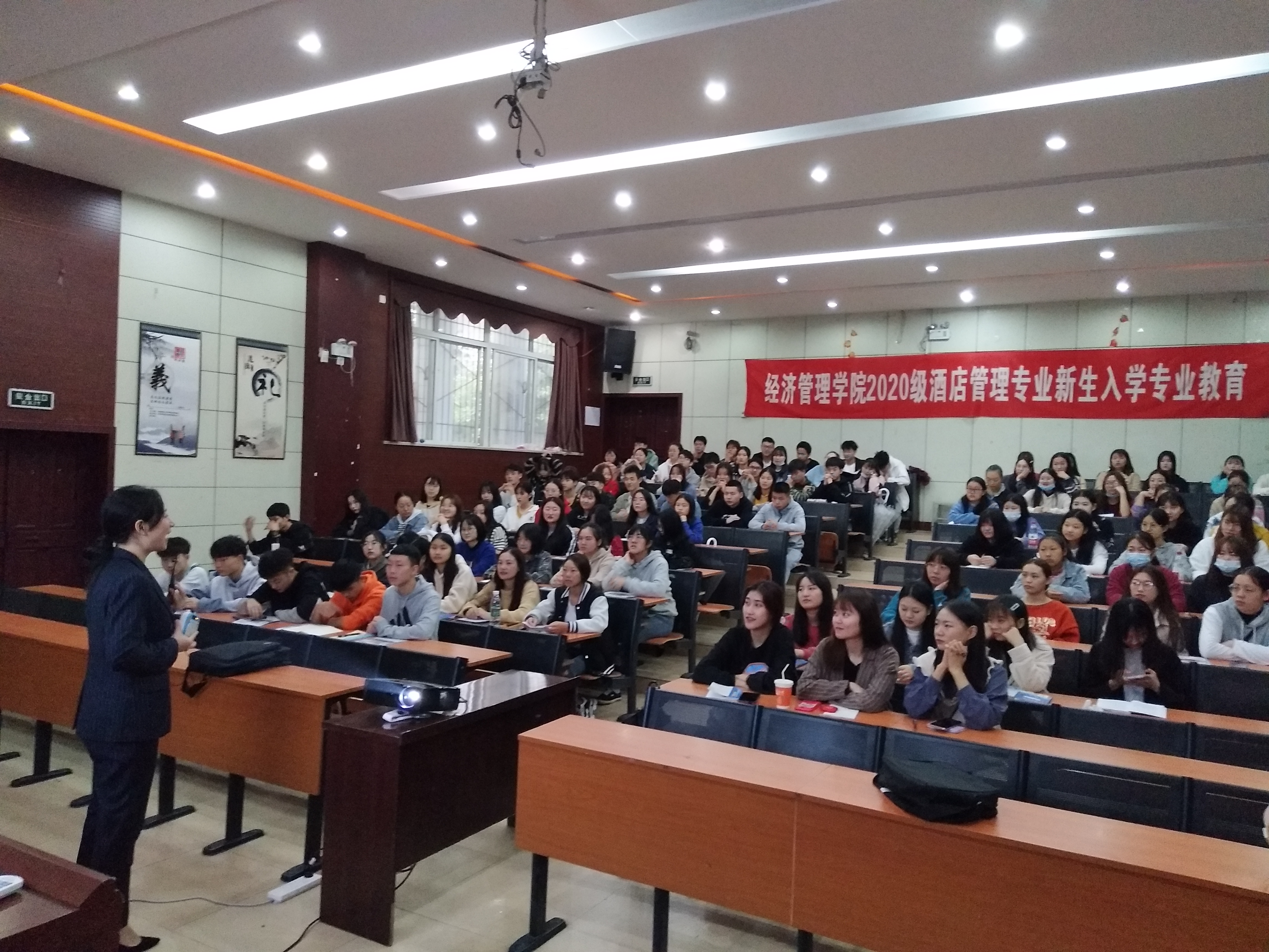 10月12日下午和13日上午,经济管理学院酒店管理专业在东区求实厅对2020级新生进行了入学专业教育。为了使新生更多地了解行业动向和专业特色,明确学习目标,做好职业生涯规划,本次专业教育邀请了成都瑞城名人酒店、泸州沣泽苑宾馆、成都明宇尚雅酒店、成都正熙国际酒店等四家合作企业到校进行宣讲。