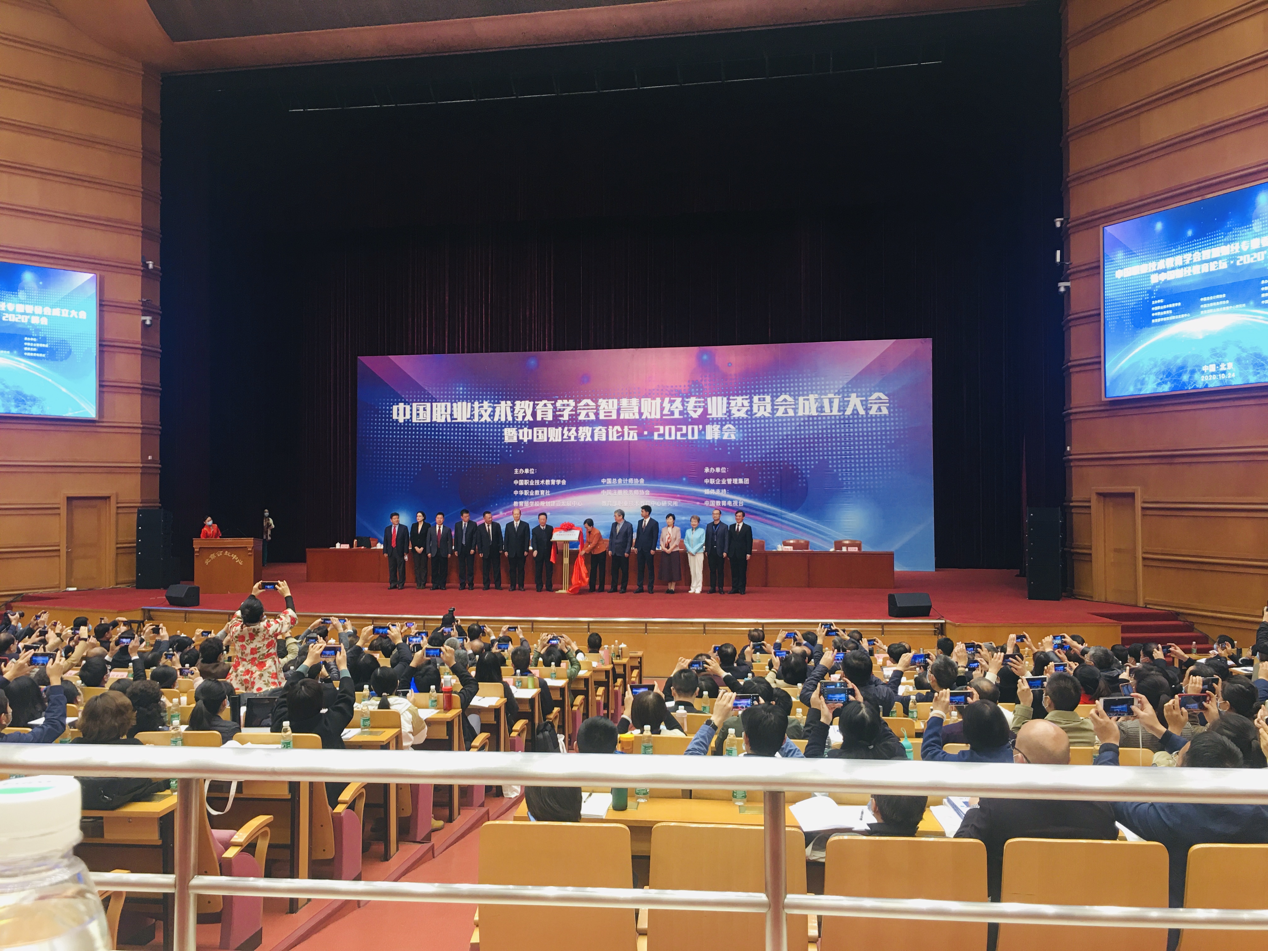 中国职业教育学会智慧财经专业委员会成立大会暨中国财经教育论坛·2020峰会于10月23日晚在北京会议中心开幕,会议由中国职业技术教育学会、教育部学校规划建设发展中心等单位联合主办。第十二届全国人大常委会副委员长陈昌智,中国职业技术教育学会会长、教育部原副部长鲁昕以及教育部有关司局领导等著名专家学者参会。我校经管学院钟倩玉和余婧两位老师代表我校参加了此次会议。
