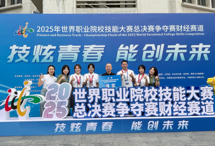 8月29日,2025年世界职业院校技能大赛总决赛争夺赛财经赛道(高职组)在山西财政税务专科学校圆满落幕,我校大数据与会计专业教师温沁、江秋雯、张楠老师指导,邱兴佳、赵雅非、贺琪、张莹四位同学组成的参赛团队,凭借扎实专业功底、默契的团队协作与稳定的临场发挥,从来自全国206支代表队中脱颖而出,以小组第2名的成绩斩获银奖,实现了我校该专业在国际赛项的历史性突破!