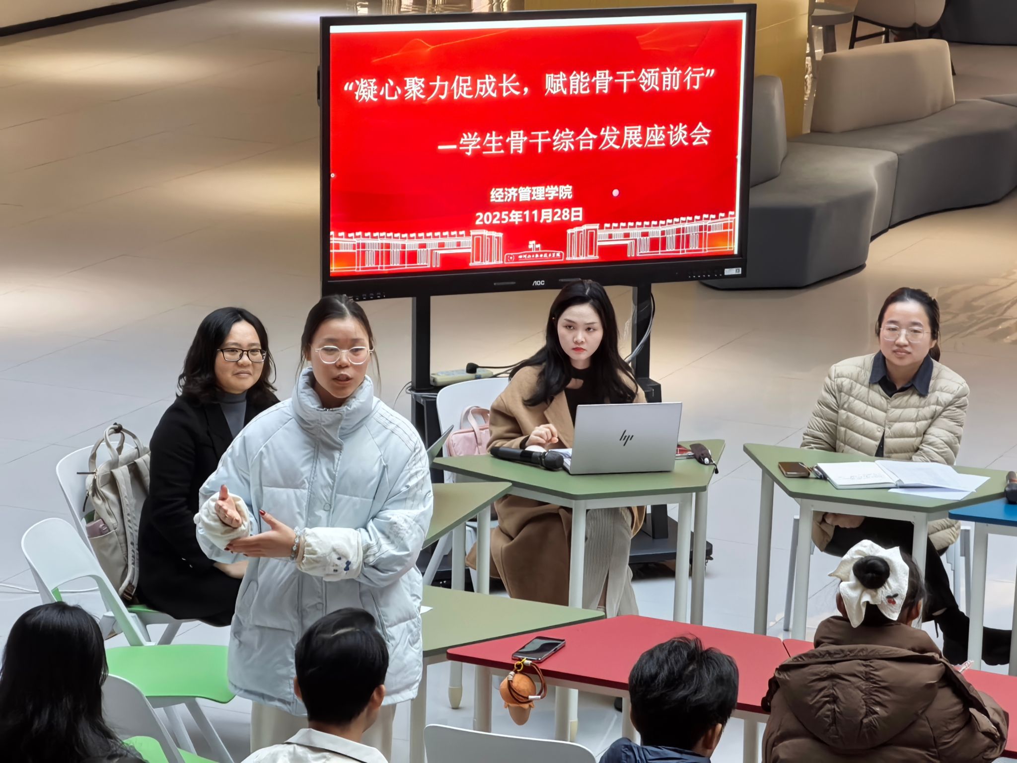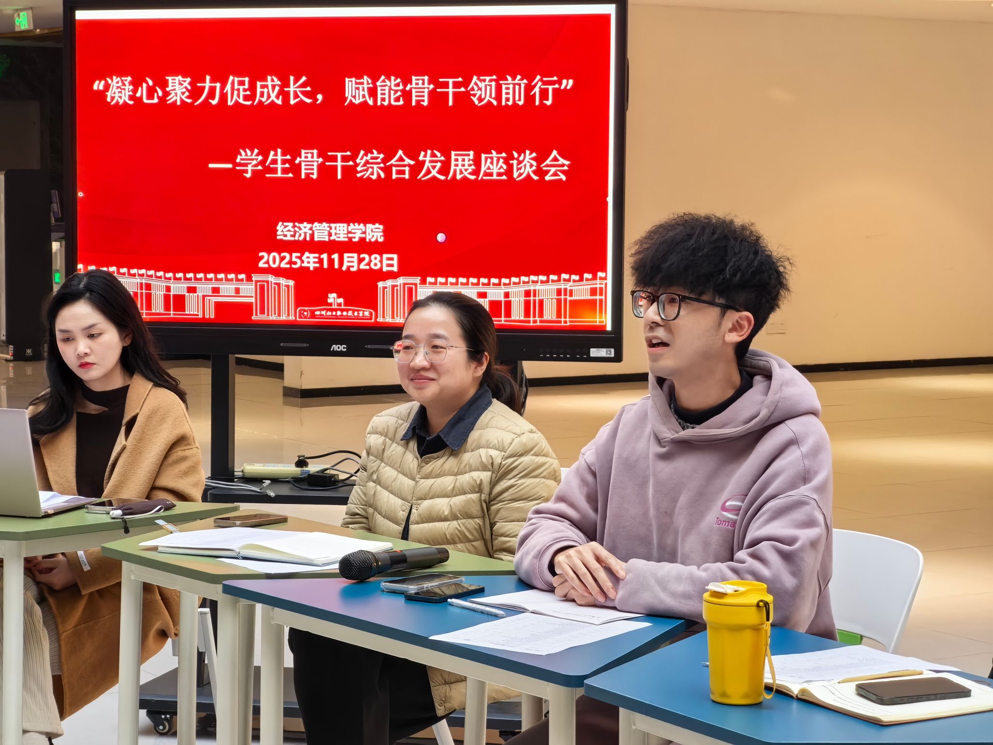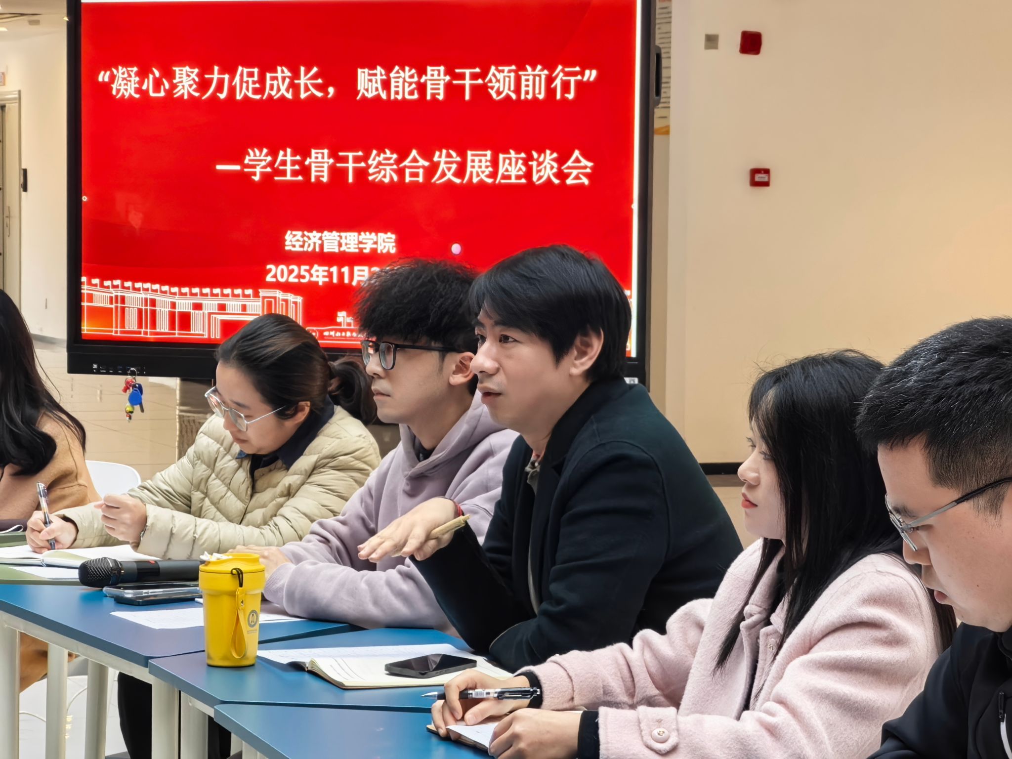 为进一步加强学生骨干队伍建设,搭建学院与学生骨干的有效沟通桥梁,破解学生工作难题,提升学生管理服务质量,11月28日,经济管理学院组织召开学生骨干综合发展座谈会。学院党总支书记张晋、副书记江劲出席会议,全院专兼职辅导员和各班级、学生会团学干部参加座谈,共话责任与成长,共商未来与发展。