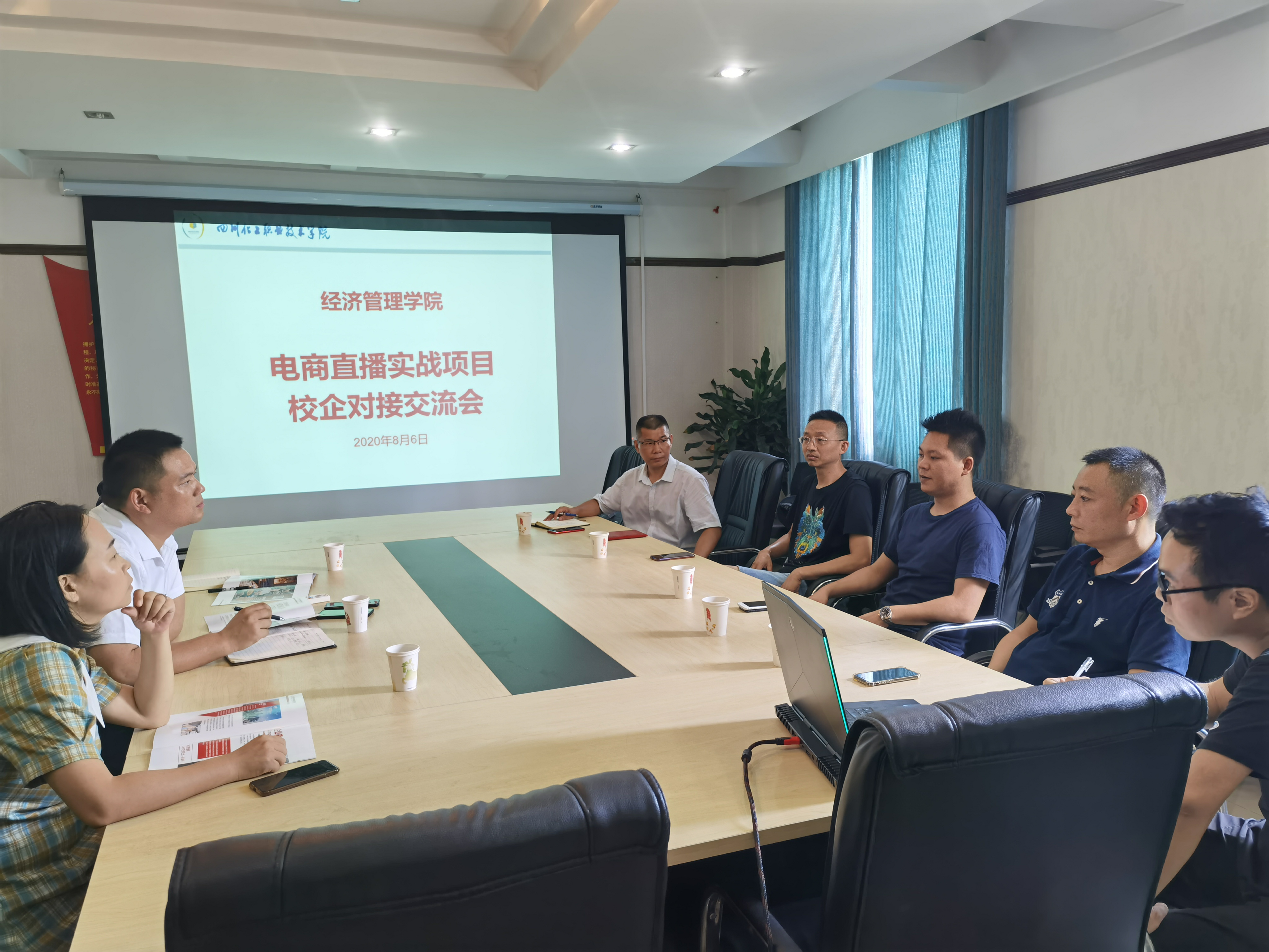 2020年8月6日,泸州斯特普网络科技有限公司总经理唐宁、四川癫狂食品集团有限公司张小江董事长一行到校,与经济管理学院进行洽谈,校企联合开发开展电商直播创新创业实战项目。