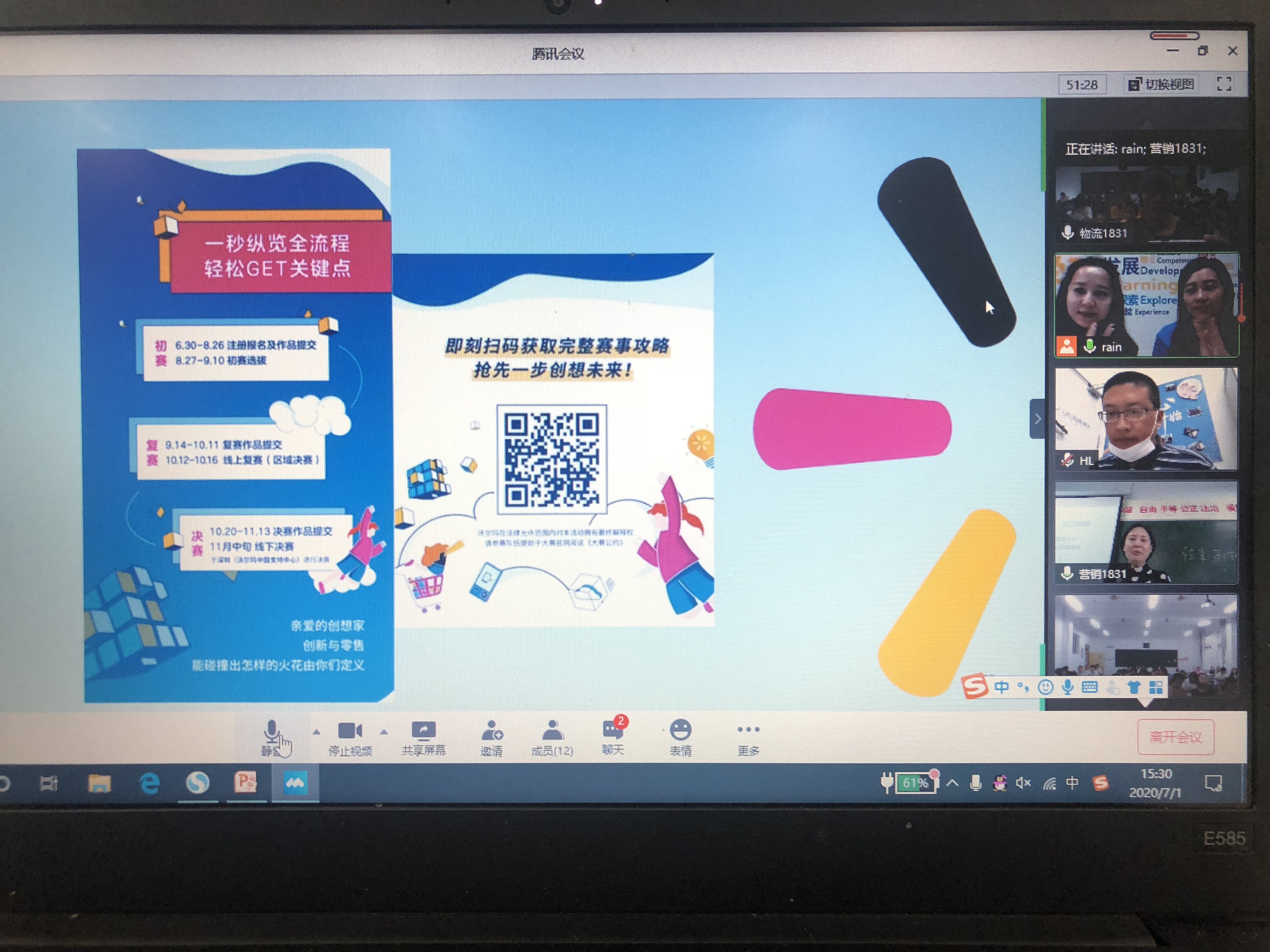 为了推进校企“云”端联动,共育职业人才,帮助学生了解疫情后的就业市场,对未来的就业有一个清醒的认识,2020年7月1日,经济管理学院联合沃尔玛中国四川区通过腾讯会议开展校企“云”端联动,共育职业人才暨经济管理学院2018级就业工作启动会,沃尔玛中国四川区自贡人力资源部经理倪壤女士和经济管理学院王兴莲老师共同主持了本次会议,经济管理学院专业教师、沃尔玛中国四川区宜宾、荣县人力资源部经理以及18级市场营销、物流管理、电子商务等专业同学在线上参加了本次会议。