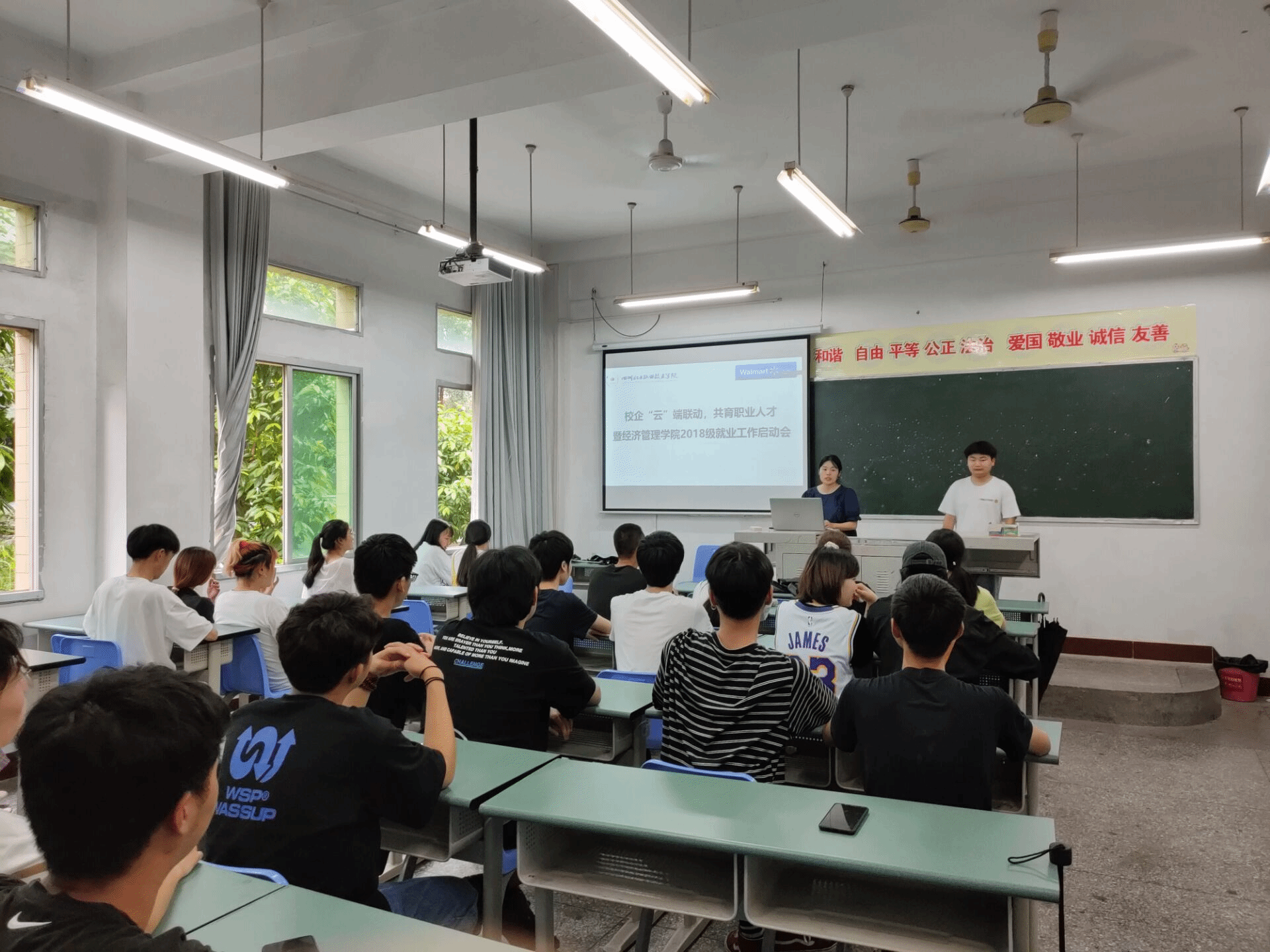 沃尔玛中国四川区自贡人力资源部经理倪壤女士向学生们介绍了沃尔玛(山姆会员店)在中国的发展历程,并详细介绍了公司的相关企业文化,并播放了抗疫期间,公司坚守岗位,助力抗疫的宣传片。