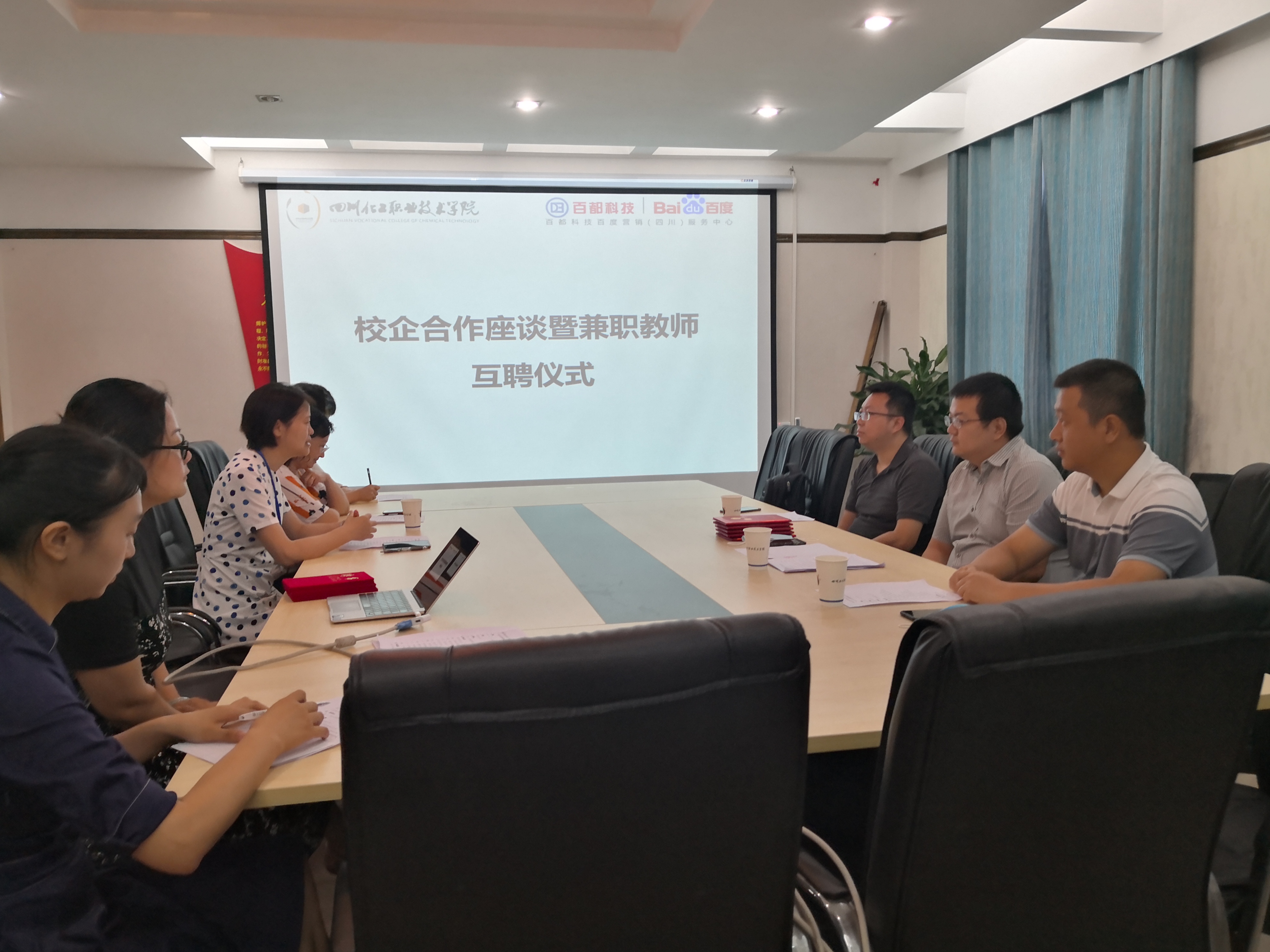 7月7日,成都百都科技有限公司百都集团人力资源中心总监张高航、百度四川地区HRBP渠道部高级总监张保刚、百度四川地区人力资源培训中心高级总监徐桥到四川化工职业技术学院参加了第三届百度订单班校企合作座谈会。本次会议由经济管理学院党总支副书记张晋主持,人事处副处长李丽霞以及电子商务以及市场营销专业教学团队的教师参与了本次座谈会。