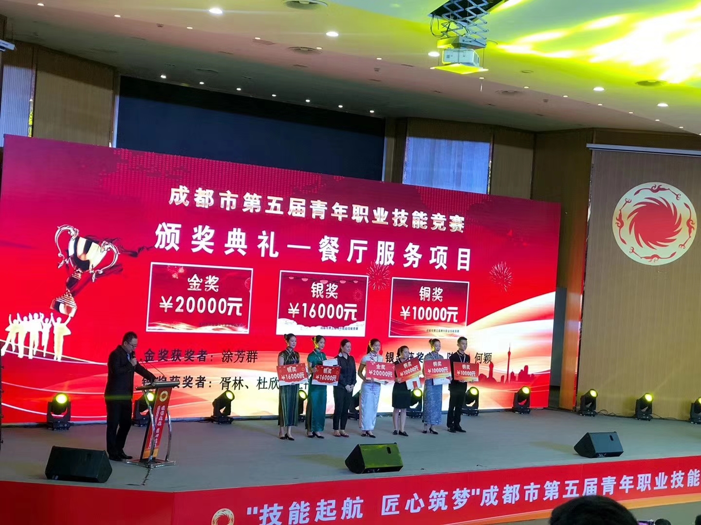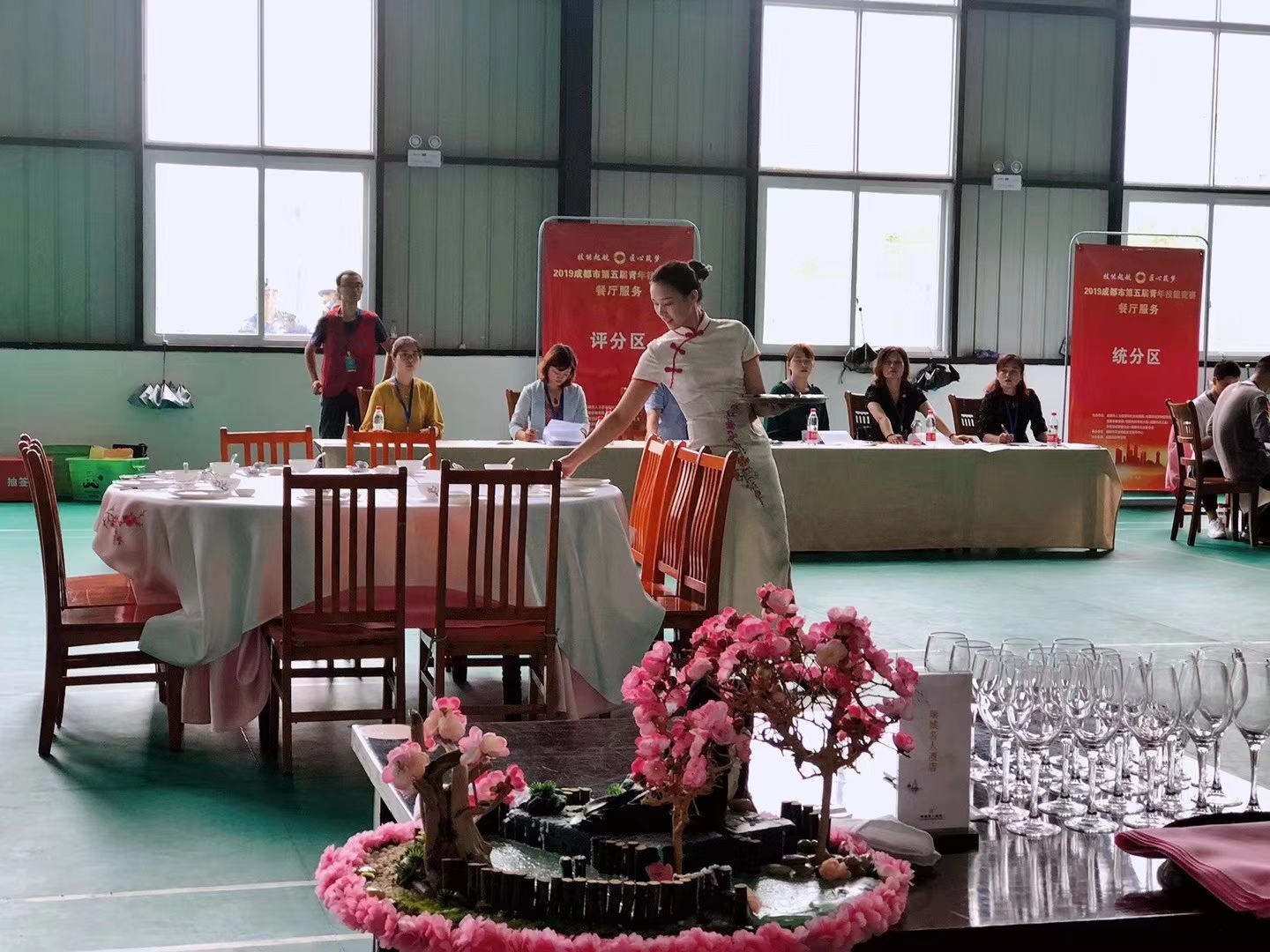 在近日举行的2019成都市第五届青年技能竞赛中,我院经济管理系酒店管理专业2015级毕业生涂芳群获得餐厅服务项目金奖(第一名),展示了优秀的职业技能。