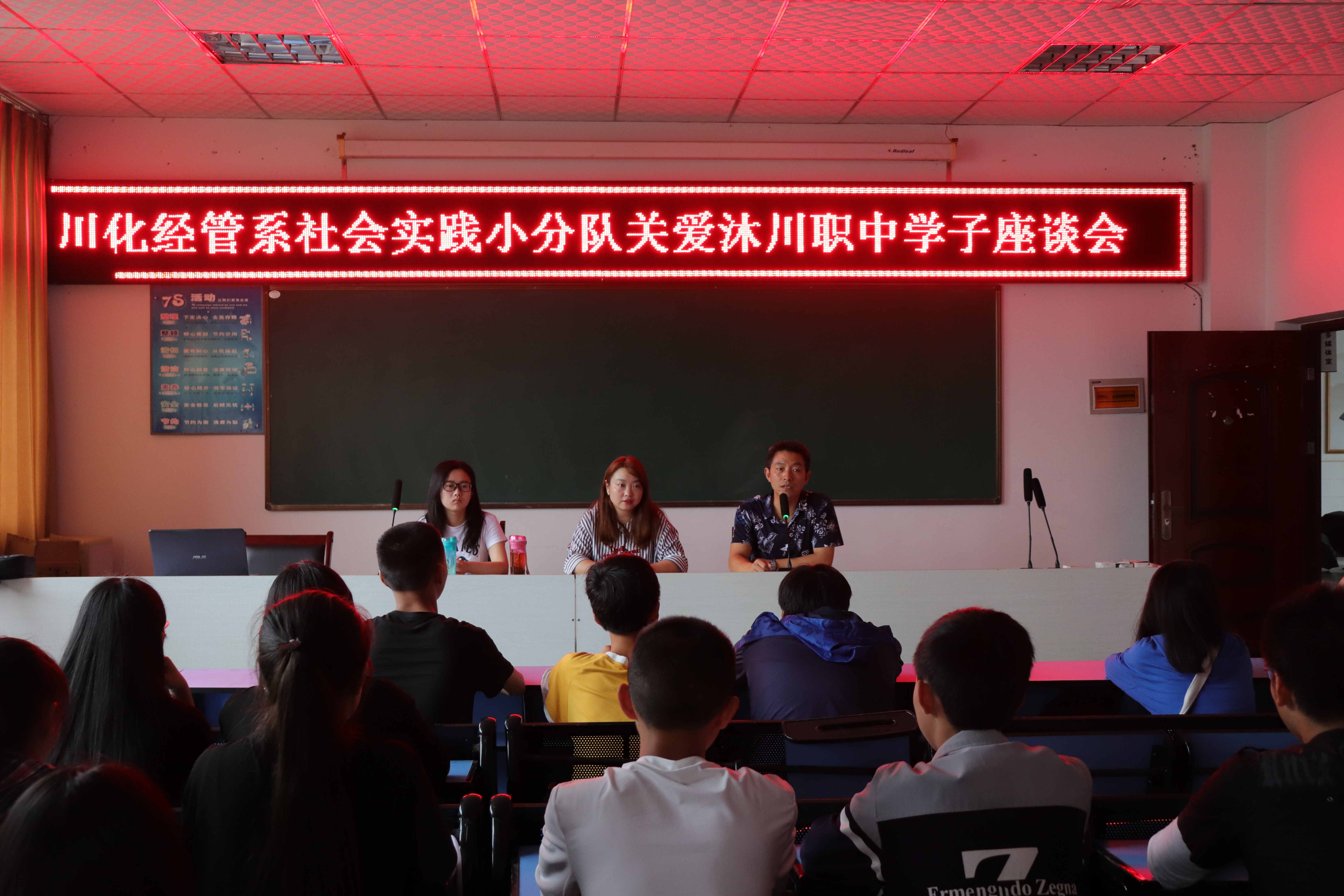 为帮助沐川职业中等学校的学生解决“学业和职业上的困惑”,社会实践小分队成员与沐川职校的30名学生代表展开了座谈会交流,在座谈会上,同学们踊跃举手发言提出困惑,我系优秀学生代表结合自身经历为他们提出了一些可行性的建议,希望通过此次座谈会交流让他们能够深受启发,更好地投入到学习当中。