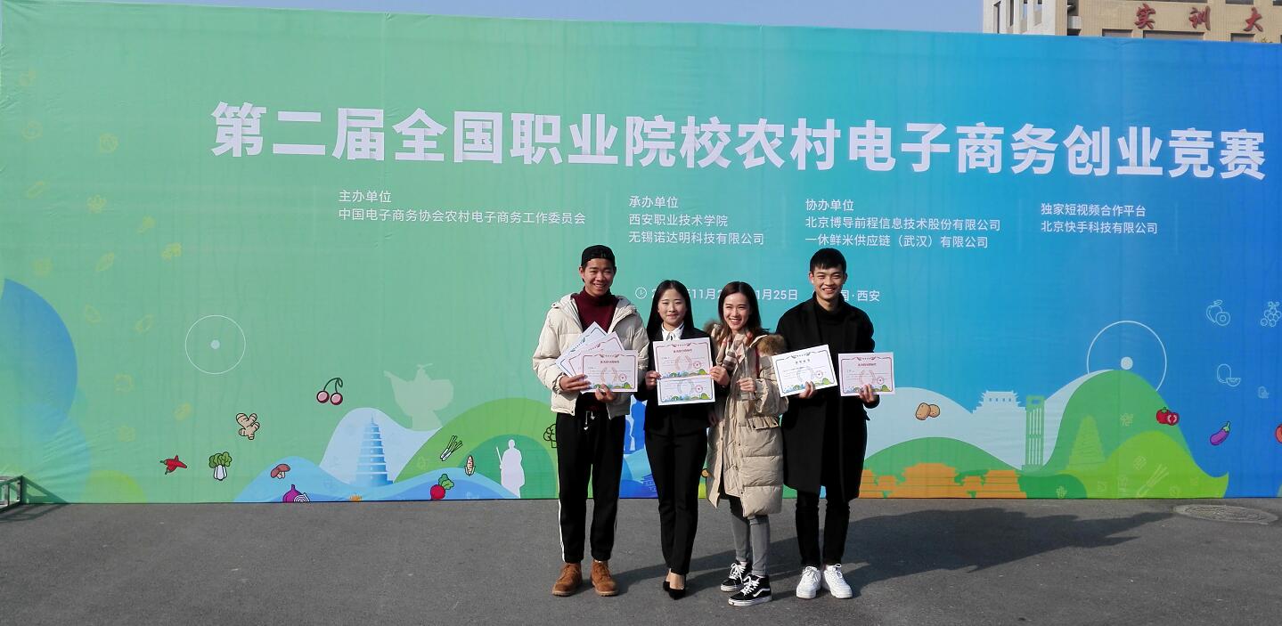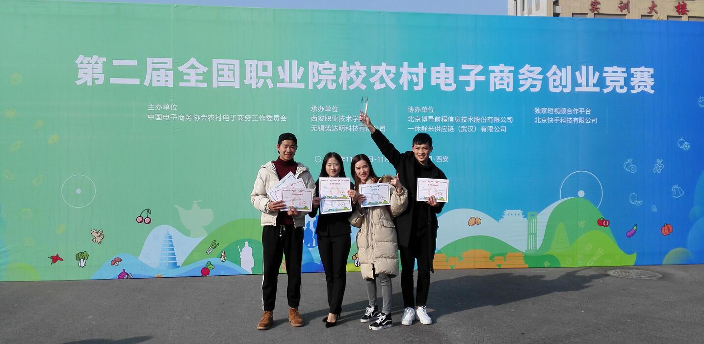 第二届全国职业院校农村电子商务创业竞赛分为初赛、复赛和决赛。自9月份启动以来,初赛参加在线报名考试学生5848名学生,共计覆盖院校222所;复赛期间共计588支队伍在快手短视频平台展开激烈的营销角逐;11月中旬,经过近两个月激烈的线上比拼,最终有全国44所院校78支队伍234名选手入围全国总决赛。我院经济管理系三支队伍9名学生进入总决赛。