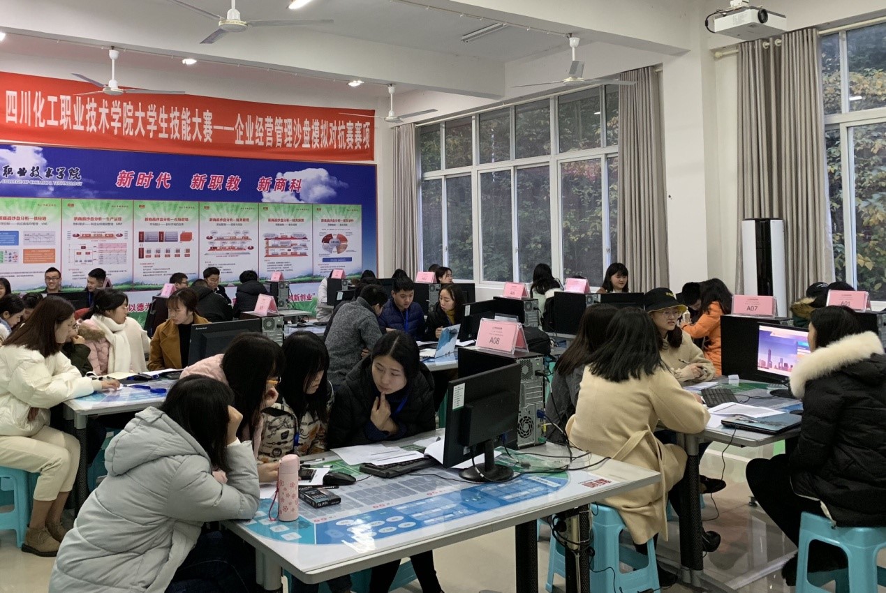 2018年“新道杯”四川化工职业技术学院学生技能大赛——企业经营管理沙盘模拟对抗赛于12月8日在东区实训楼204、206实训室顺利举行。本次比赛由学院团委和经济管理系合办、新道科技股份有限公司四川片区生态合作伙伴成都领源教育科技有限公司友情赞助。