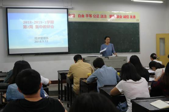 2018年9月12日,经济管理系组织全体专兼职教师开展本学期第一次集中教研活动,特意邀请督导组刘文教授讲解教育教学注意事项,提升教师教育教学技能。会议由马小洪副主任主持。