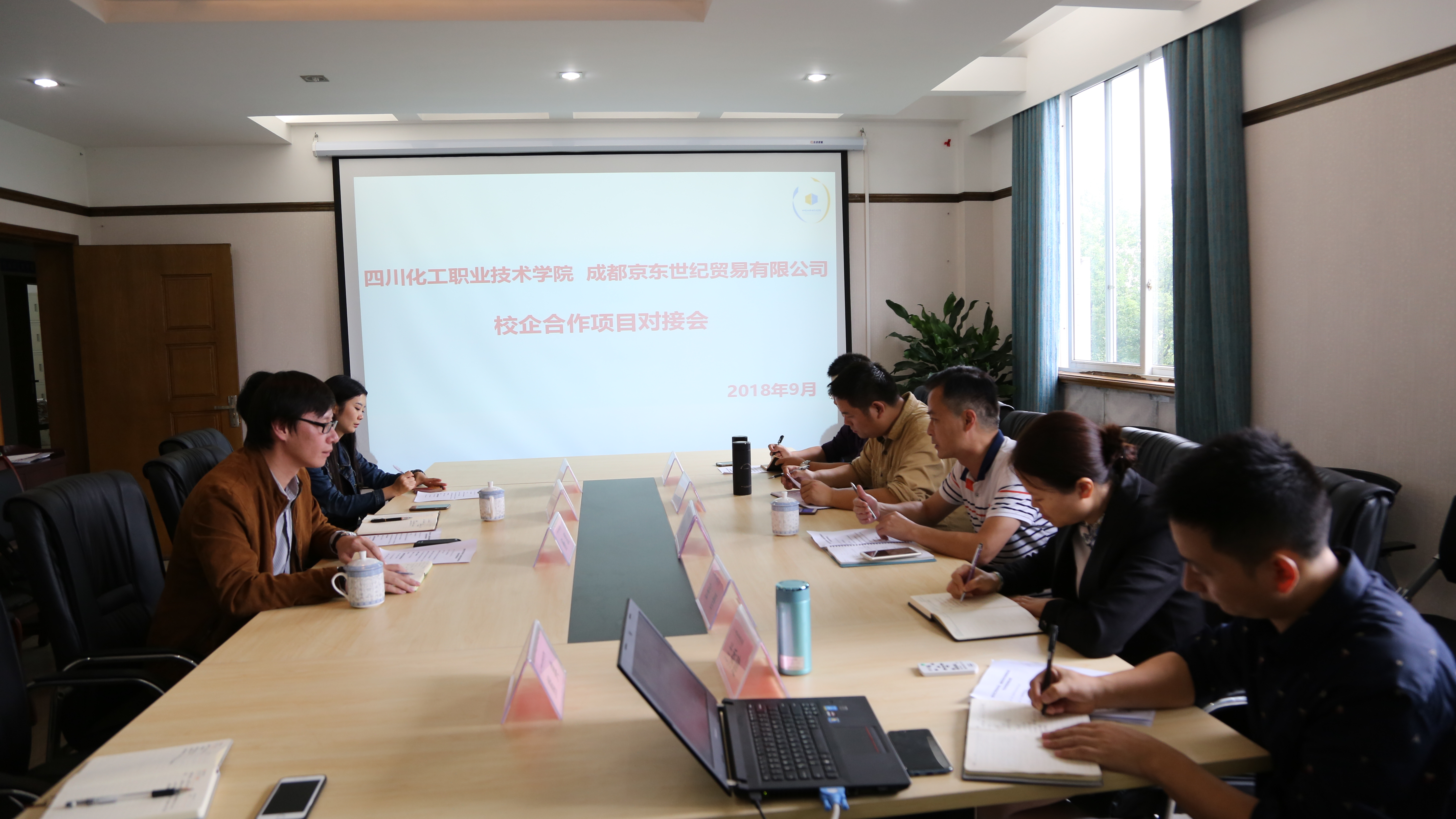 2018年9月18日下午,四川化工职业技术学院与成都京东世纪贸易有限公司校企合作项目对接会在行政楼404会议室举行。学院招就处罗伦忠处长、经济管理系张晋副书记、马小洪副主任、窦宇副主任、物流管理专业教师,成都京东世纪贸易有限公司组织人才发展总监杨凯、校企合作高级经理王飞、配送人力资源部BP主管唐蝶出席此次会议。