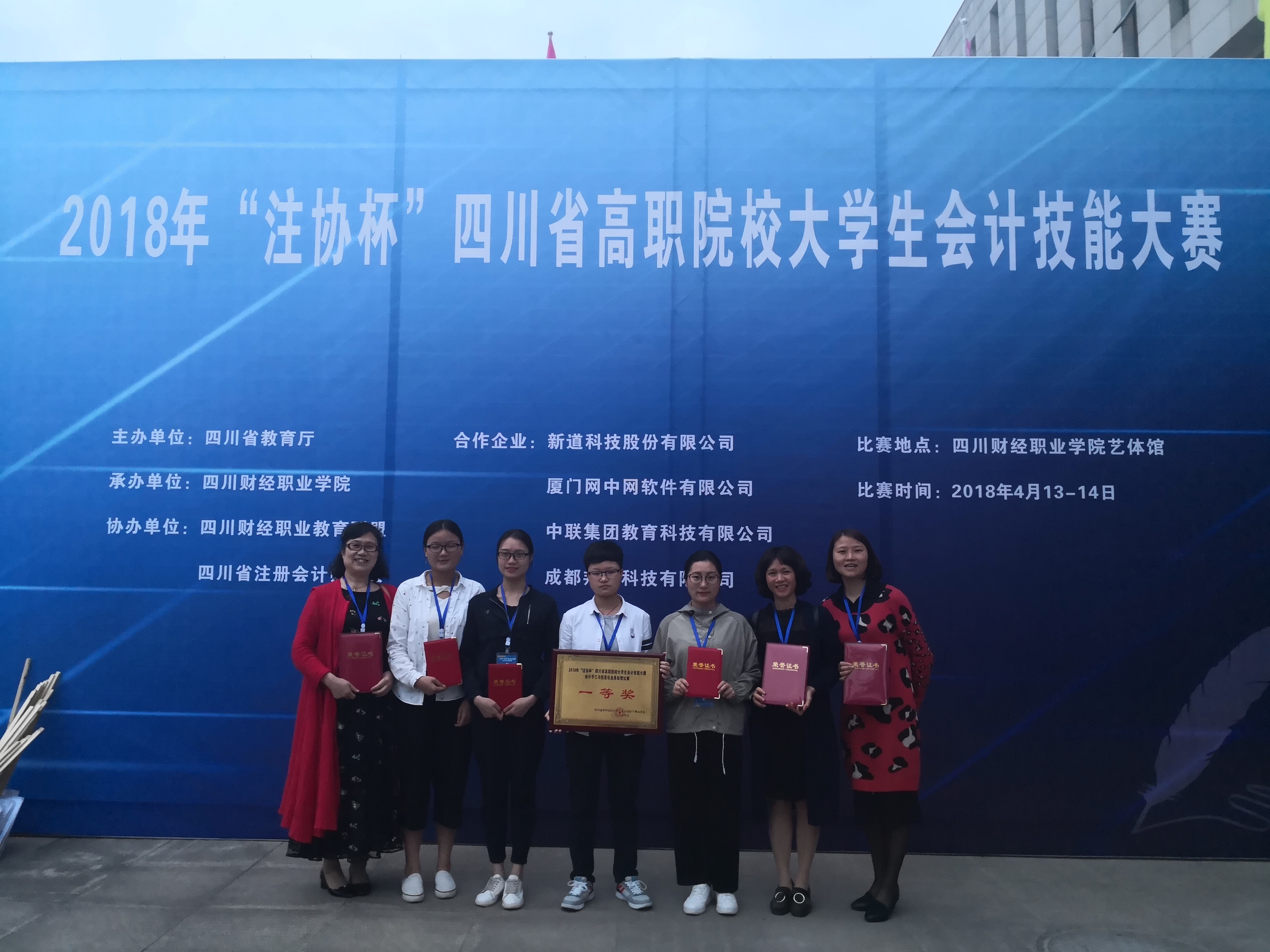 4月14日,2018年四川省高职院校会计技能赛项在四川财经职业学院圆满结束。在44支参赛队伍中,既有今年省会计技能竞赛第一名的获得者——四川财经职业学院,又有省级以上示范院校,如四川建筑职业技术学院、成都航空职业技术学院和成都职业技术学院,可谓强队林立。经过两场各180分钟比赛的激烈紧张角逐,张晋、钱龙珍、陈秀芬、罗希等老师指导的会计专业学生付丽春、姚倩玉、张诗悦、张梦婷4人组成的代表队凭借扎实的专业基础,不负众望,沉着应战,顽强拼搏,最终蝉联“四川省团体一等奖”,又一次为我院争得了荣誉。