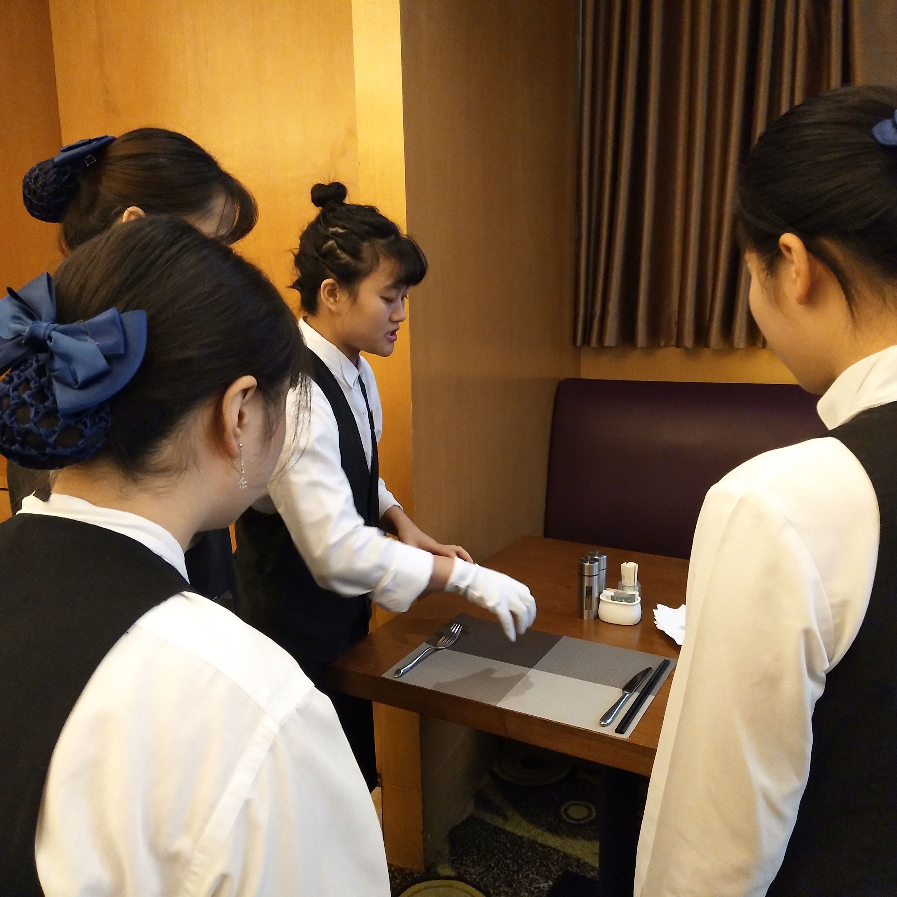 成都瑞城名人酒店的25名同学4日一早在指导老师的带领下乘大巴车从泸州到达酒店,稍作休整就投入到酒店应知应会培训中。培训结束后,同学们被分配到中餐厅和西餐厅服务岗位。中、西餐厅负责人带领同学们参观了部门所辖经营点及功能分区,分别为每一位同学指派了指导老师,实训期间同学们将在企业指导老师的指导下开展对客服务工作。实训期间,学生们将实际操作包括预订、迎宾、席间服务、清洁工作等环节在内的餐饮服务整体流程,并通过不断实践,熟练掌握各项技能。