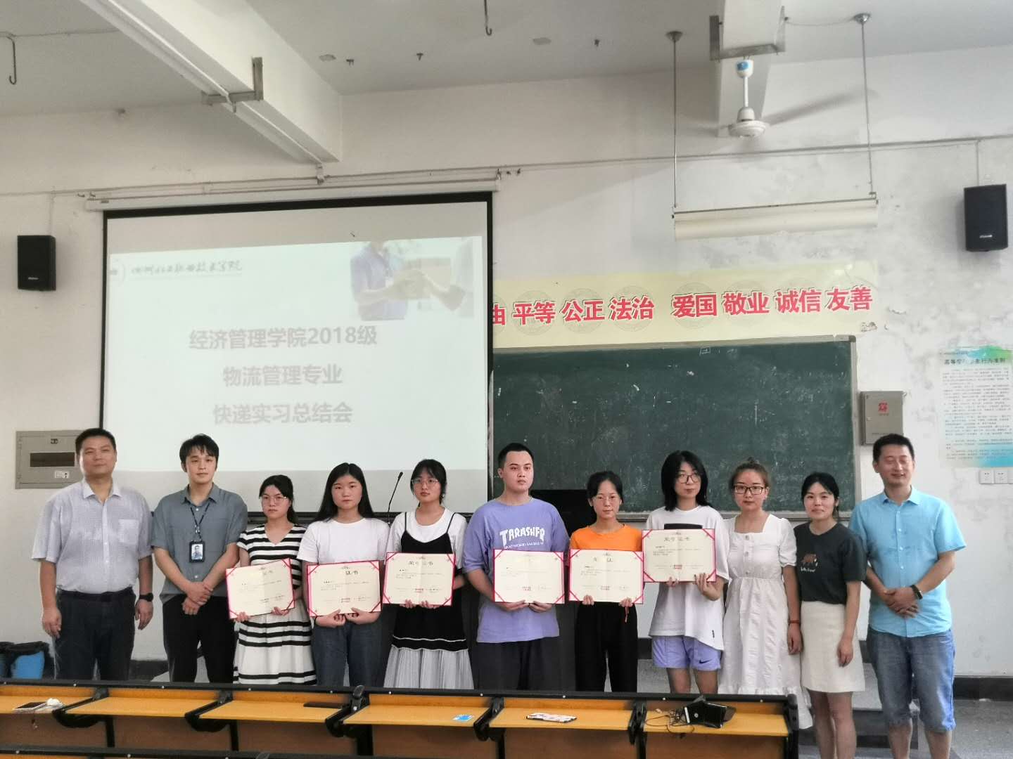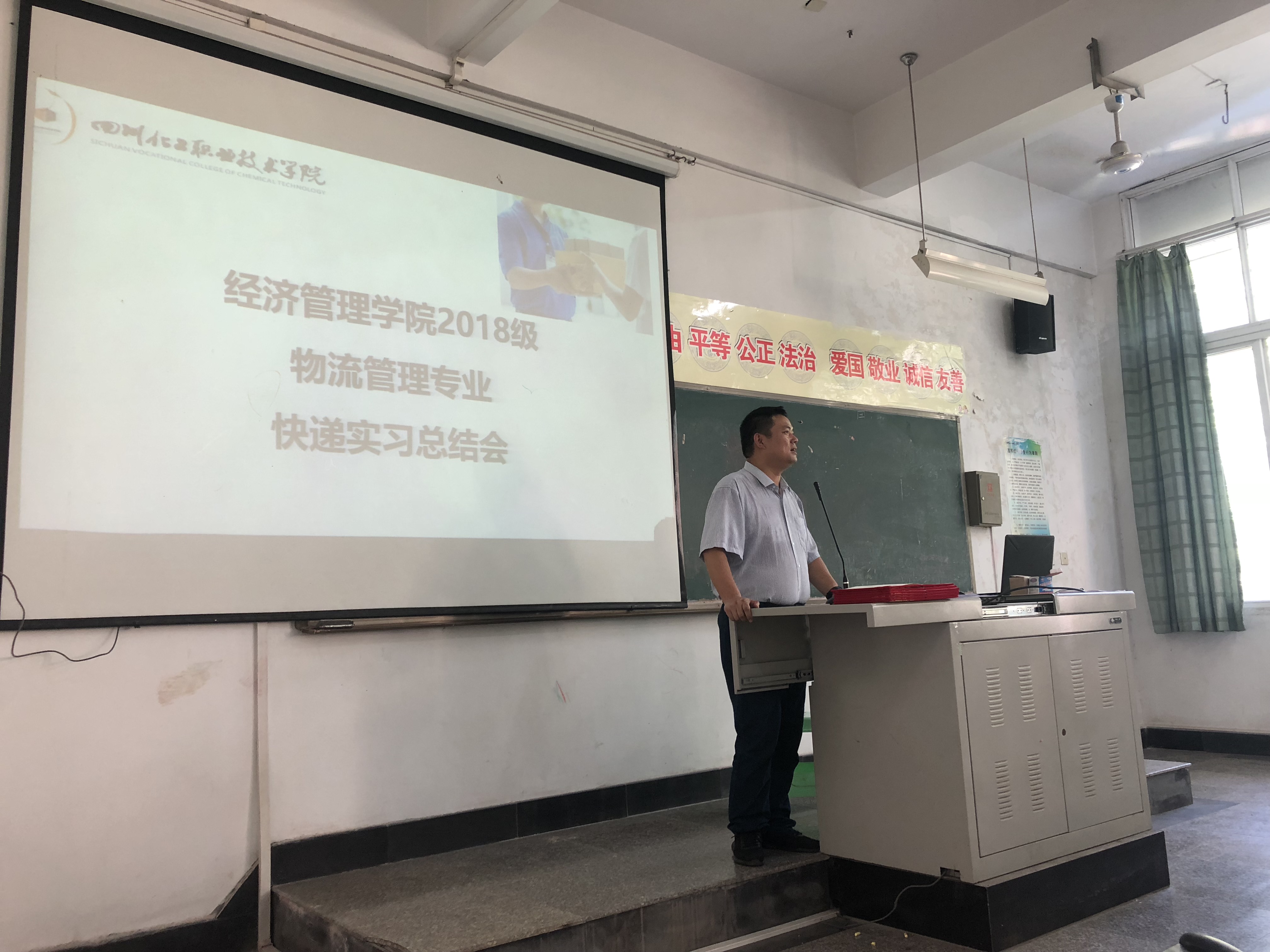 为总结学生专业实习效果,检验实习实训教学成果,2020年7月3日下午,物流管理专业18级在实训楼召开了快递实习总结会,经济管理学院马小洪副院长、物流管理专业教师、顺丰速运泸州龙马潭区邓萌经理、一号物流创业负责人出席了本次会议。