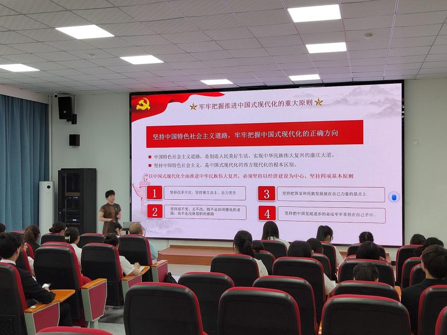 培训的最后,陈秀芬副院长强调要以中国式现代化全面推进中华民族伟大复兴,必须坚持以经济建设为中心,牢牢把握坚持改革开放,坚持独立自主,自力更生;坚持道不变、质不改,既不走封建僵化的老路,也不走改旗换帜的邪路;坚持把国家和民族发展放在自己力量的基点上;坚持把中国发展进步的命运牢牢地把握在自己手中这四项基本原则 。