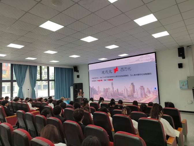 中国式现代化是中国共产党领导、开创、推进的现代化,是坚持和发展中国特色社会主义的现代化。通过陈秀芬副院长的讲解,同学们从人口规模巨大的现代化、全体人民共同富裕的现代化、物质文明和精神文明相协调的现代化、人与自然和谐共生的现代化、走和平发展道路的现代化五个方面了解了中国式现代化的本质要求和中国特色的内在联系。陈秀芬老师着重强调现代化不等于西方化。中国式现代化,开创了不同于西方资本主义现代化的全新路径,为人类对更好社会制度的探索提供了中国方案、贡献了中国智慧。
