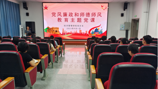 9月1日下午,经济管理学院党总支在酒谷湖校区召开党风廉政和师德师风教育主题党课,经济管理学院全体教师共50余人参加。