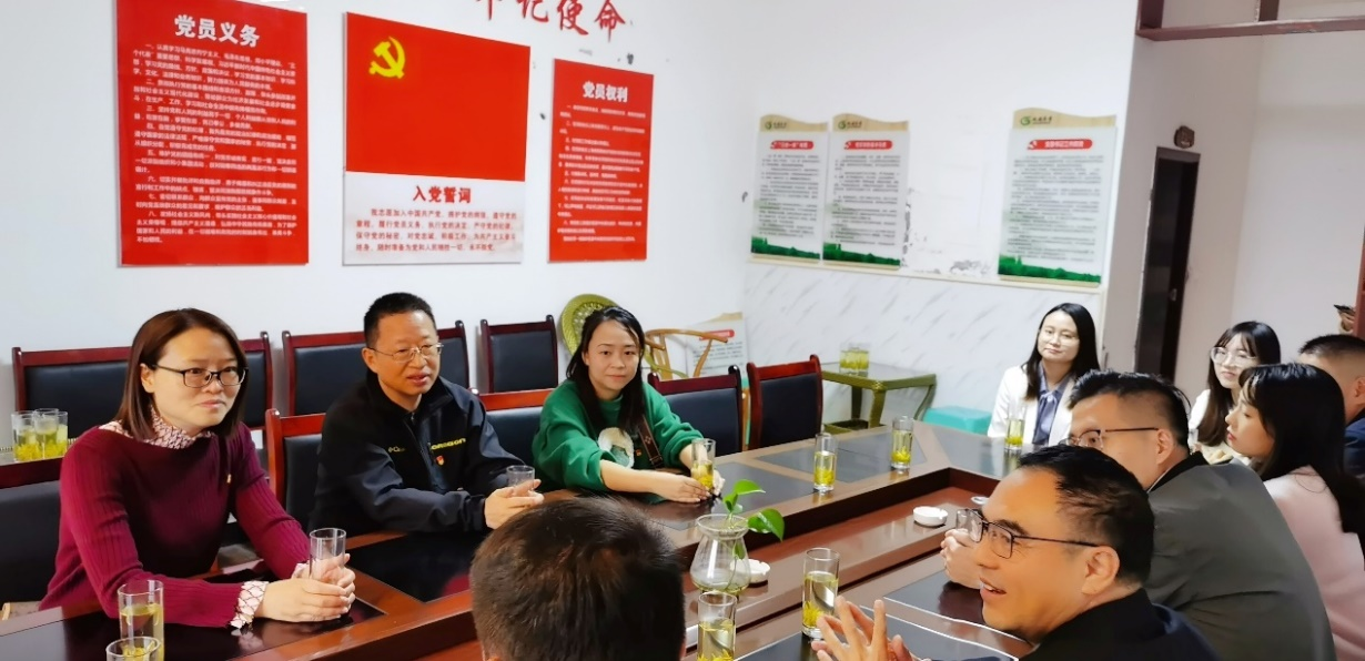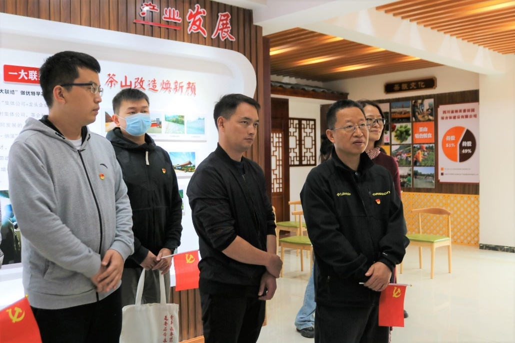 活动第一站,来到茶乡梅岭党群服务中心。四川凤岭茶叶有限责任公司党支部负责人介绍了他们的支部工作法,即:“一二三”工作法,即一个目标,两个融入,三个突破。经济管理学院党总支书记张晋也介绍了本支部的“234”工作法,双方就党建工作的经验进行了深入交流。