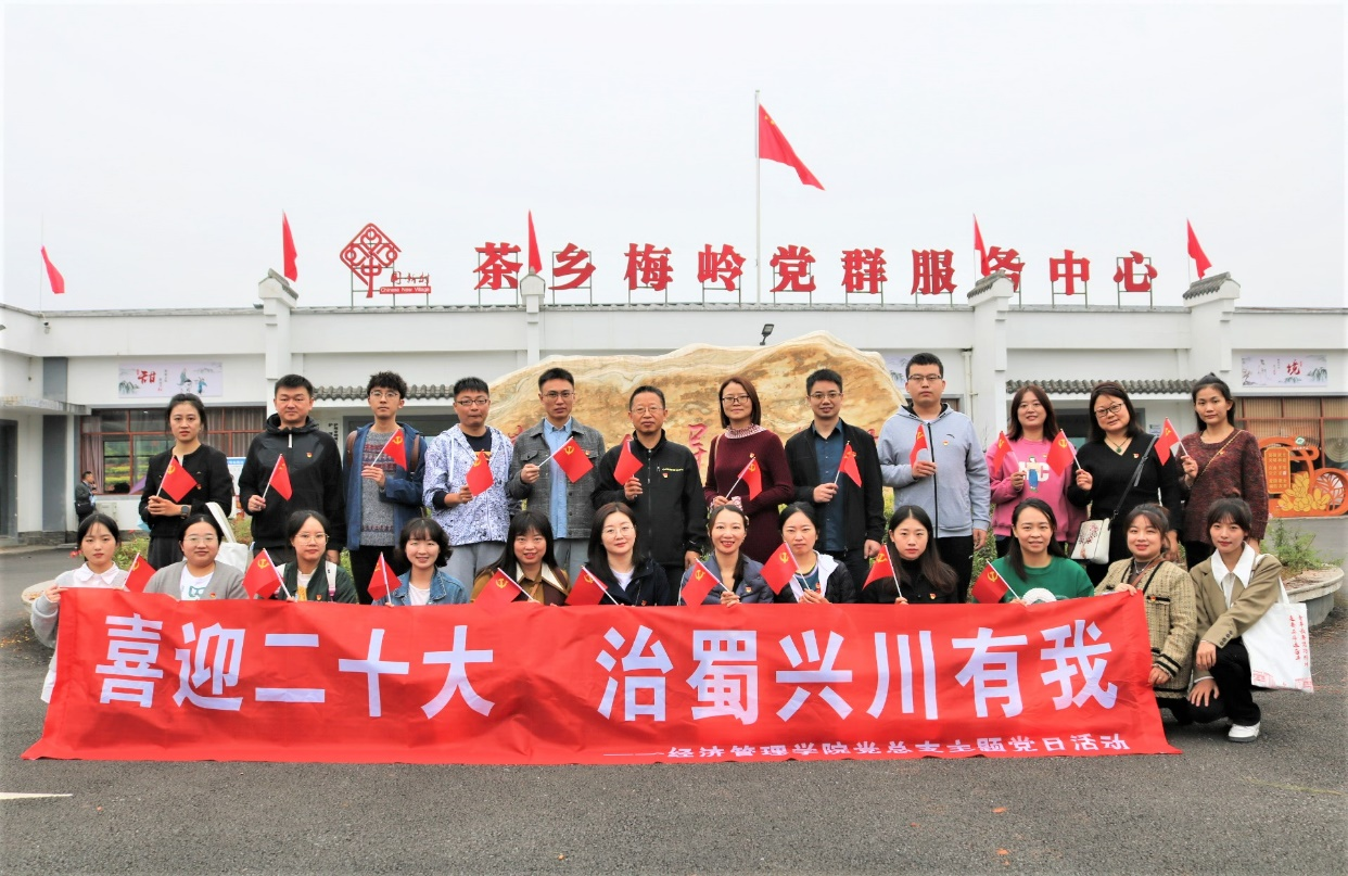 为提升党建工作水平,互相分享好的经验做法,促进党建工作与行业服务的深度融合,同时促进学院专业发展建设。2022年10月12日,学校蒲开伦副院长带领经济管理学院党总支全体党员教师前往纳溪区护国镇茶乡梅岭开展“喜迎二十大 治蜀兴川有我”主题党日活动。