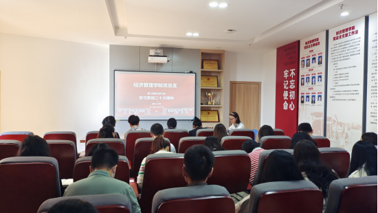 10月19日上午,经济管理学院党总支组织学院50余名教师在学院会议室召开“学习贯彻党的二十大精神”宣讲会。