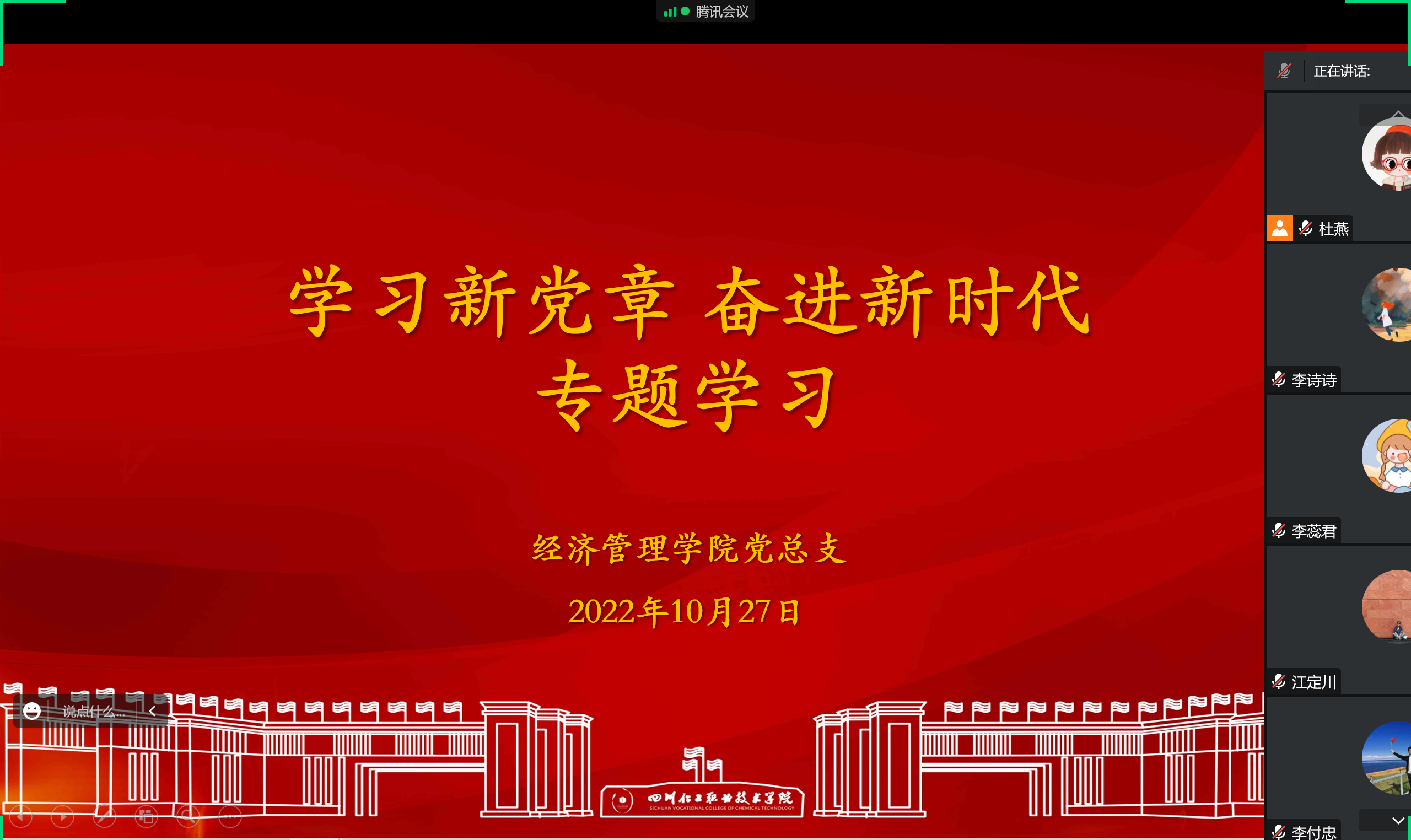 为深入学习贯彻党的二十大精神,加深对新党章的理解,引导党员干部更加自觉地尊崇党章、贯彻党章、维护党章,10月27日下午,经济管理学院党总支在行政楼426会议室召开专题学习会,专题学习党的二十大新修订通过的《中国共产党章程》。会议由学院党总支书记张晋主持,经济管理学院全体党员参加。
