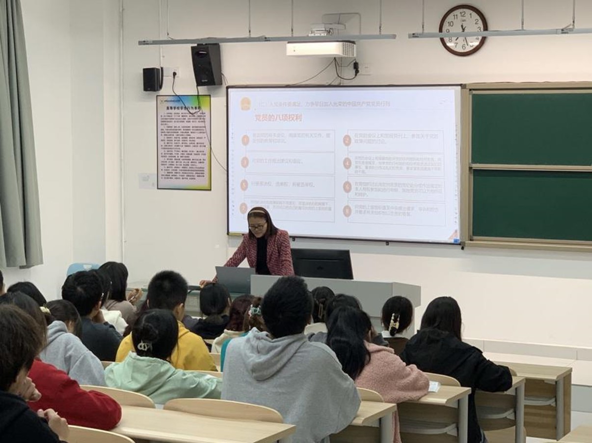 11月16日晚,经济管理学院党总支书记张晋为学员讲授党课,学院第36期入党积极分子62名学员参加课程。