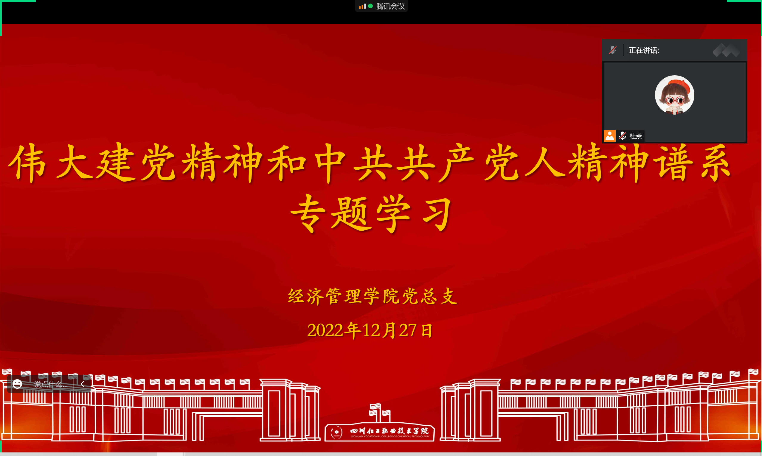 2022年12月27日,经济管理学院党总支学习中国共产党人精神谱系专题,党总支书记张晋主持,全体党员老师参加学习。