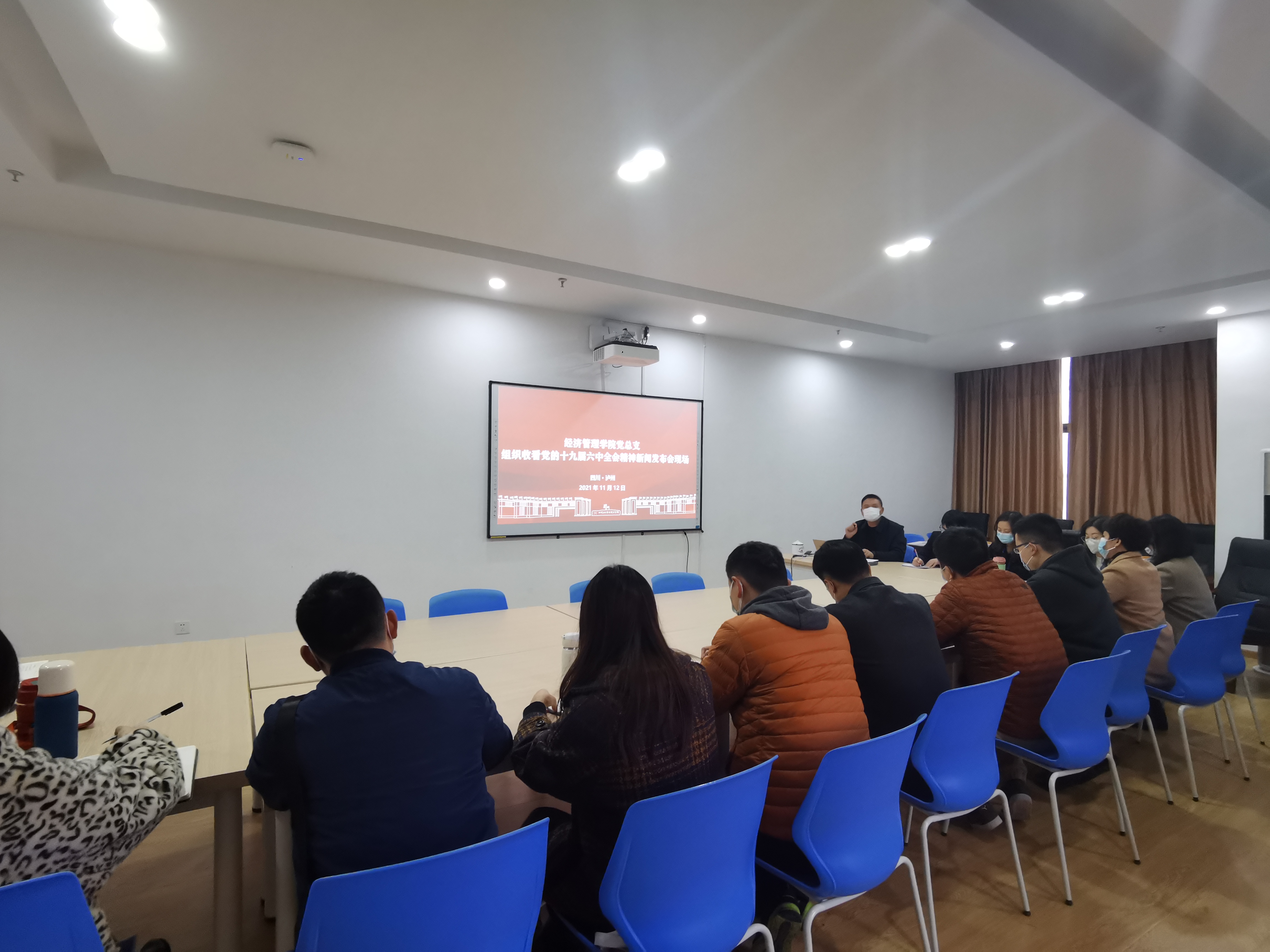 2021年11月12日上午10点,经济管理学院党总支在学校综合办公楼426会议室召开会议,组织学院教师收看党的十九届六中全会精神新闻发布会,会议由经管学院党总支副书记、院长马小洪主持。