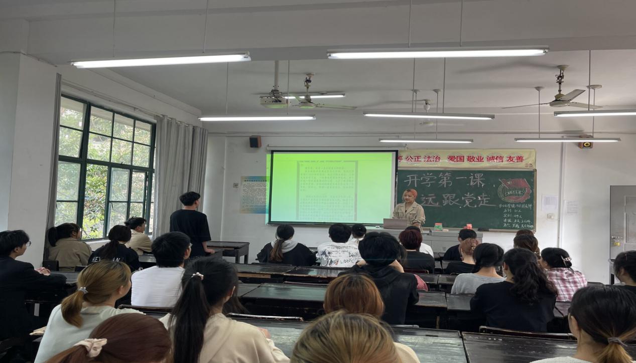 在校团委和学院团总支的指导下,本次团课通过PPT演讲、板报、同读《团团致四川学子的一封信》、观看红色视频等多种形式开展。在各班级主持人的带领下,引导同学们回顾历史,缅怀革命先烈,着眼新世纪。